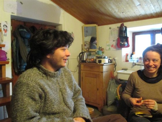 Legati dalla passione per la natura, il nomadismo, l’arte e la musica (in particolare quella gitana), come prima tappa invernale avevano pensato alla Slovenia, dove potevano contare su un’amicizia, e da dove avrebbero proseguito il loro viaggio verso oriente, alla scoperta delle culture nomadi ancora esistenti. Ma i viaggi, si sa, nascondono anche delle insidie. Ed è così che ad ottobre 2017 il gelo e la neve li ha un po’ sorpresi sui valichi delle montagne retiche. Grazie però all’intervento provvidenziale di una loro amica valposchiavina conosciuta a Neuchâtel hanno potuto trascorrere l’inverno presso un cascinale a Golbia, in Valposchiavo.