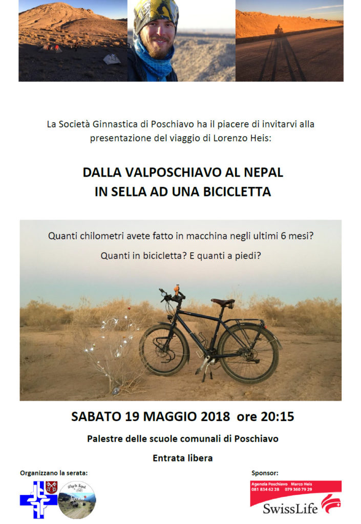 Alle 20.15, presso le palestre delle scuole comunali di Poschiavo, “Dalla Valposchiavo al Nepal in sella ad una bicicletta“.
