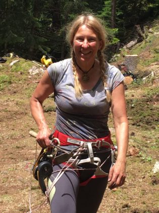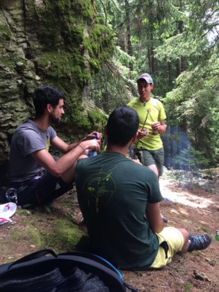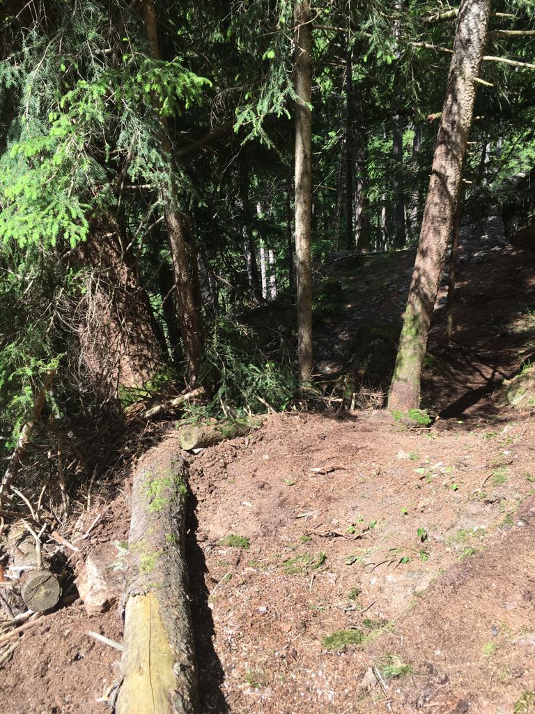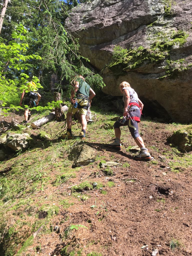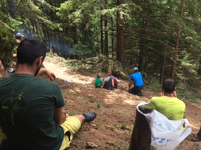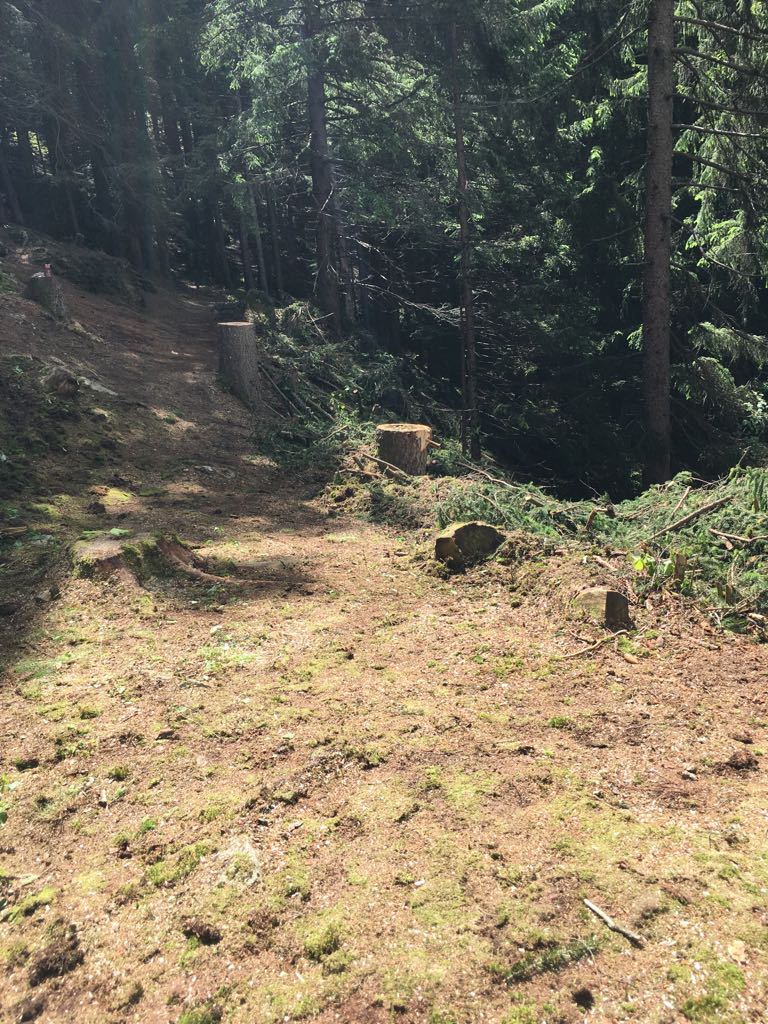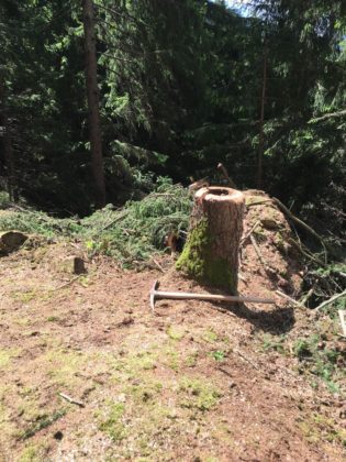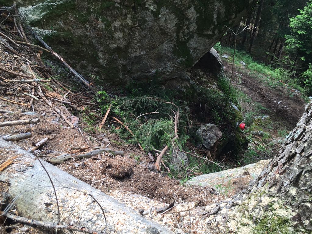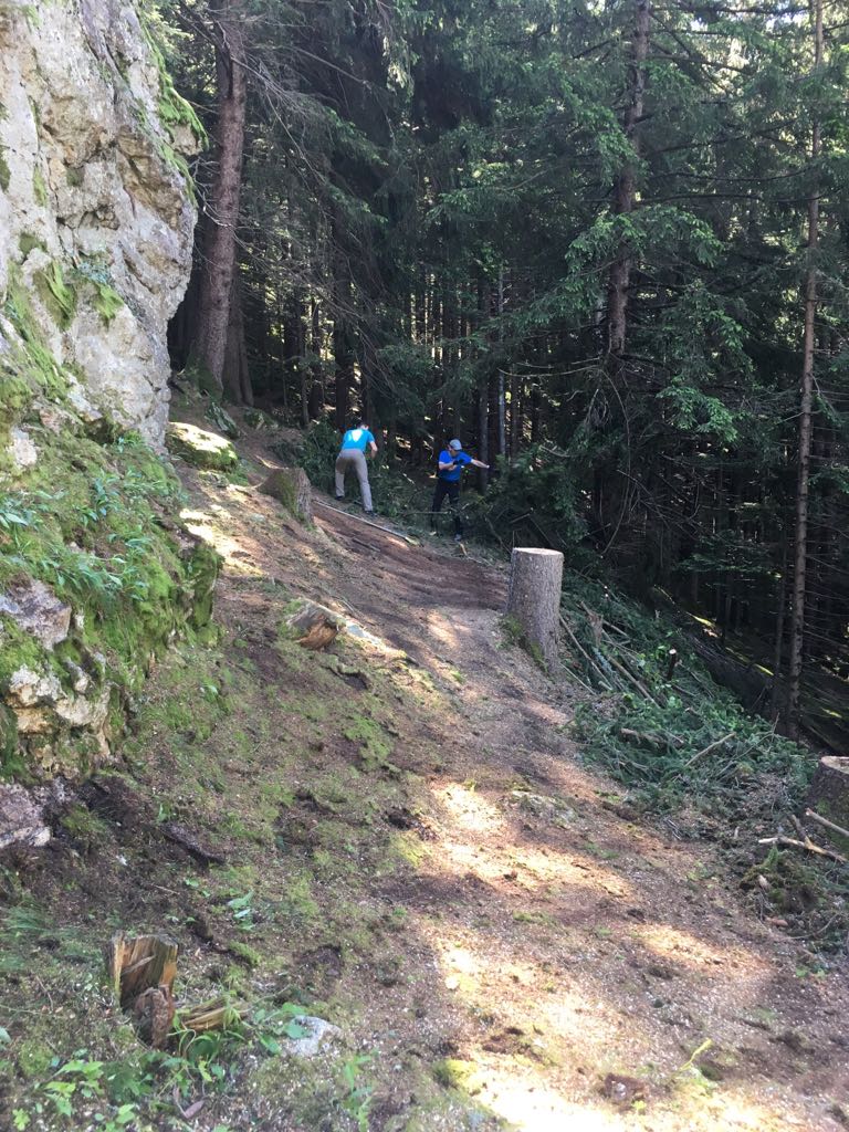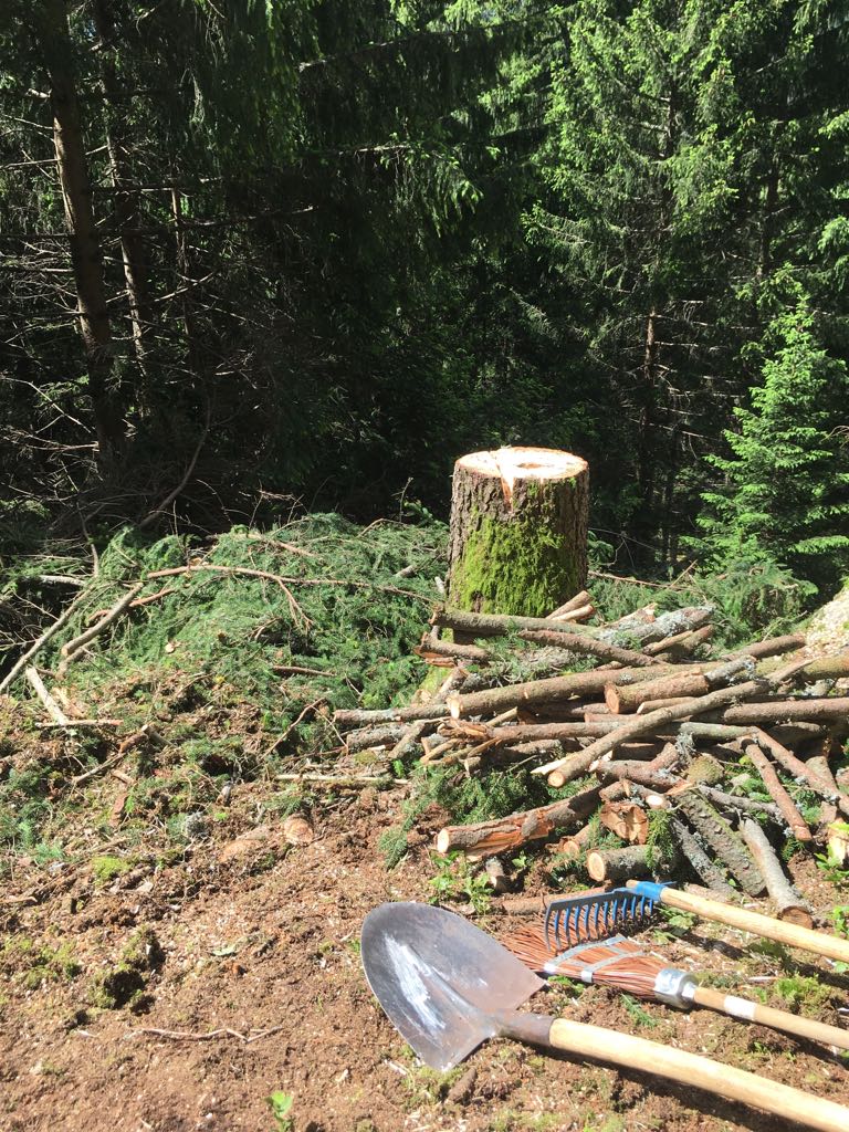 Alle 9:00 ci siamo dunque incontrati al parcheggio dell’autobus e da li siamo saliti fino alla falesia, dove gli organizzatori avevano già provveduto al taglio di alcuni grandi alberi che lasciavano poco spazio di manovra e facevano sempre ombra alla falesia. Abbiamo dunque iniziato ad ammucchiare rami e ha pulire lo spazio al di sotto della parete. Dopodiché abbiamo cominciato la pulizia della parete, la quale era ricoperta da molto muschio e altro sporco.