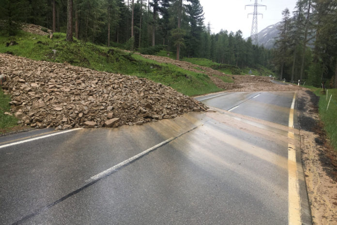 A causa di violenti temporali, tra Pontresina e il Passo del Bernina, nei Grigioni, oggi pomeriggio si sono verificate quattro colate di fango che hanno invaso la strada del colle.