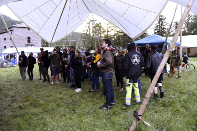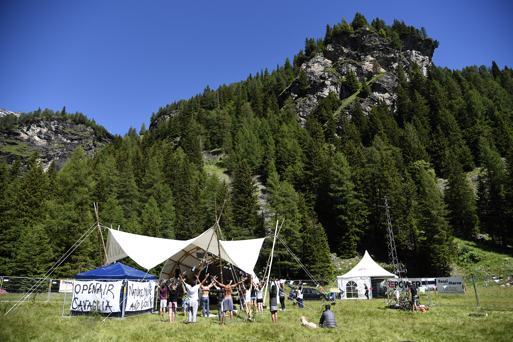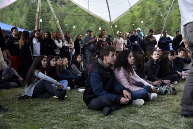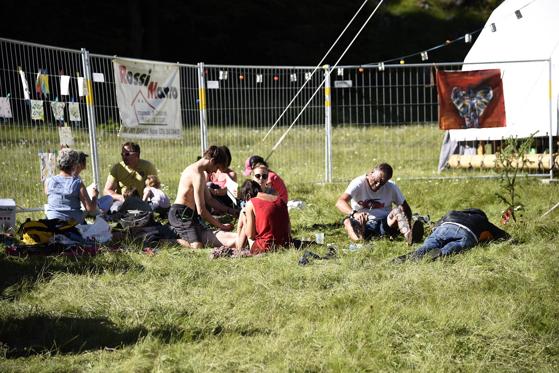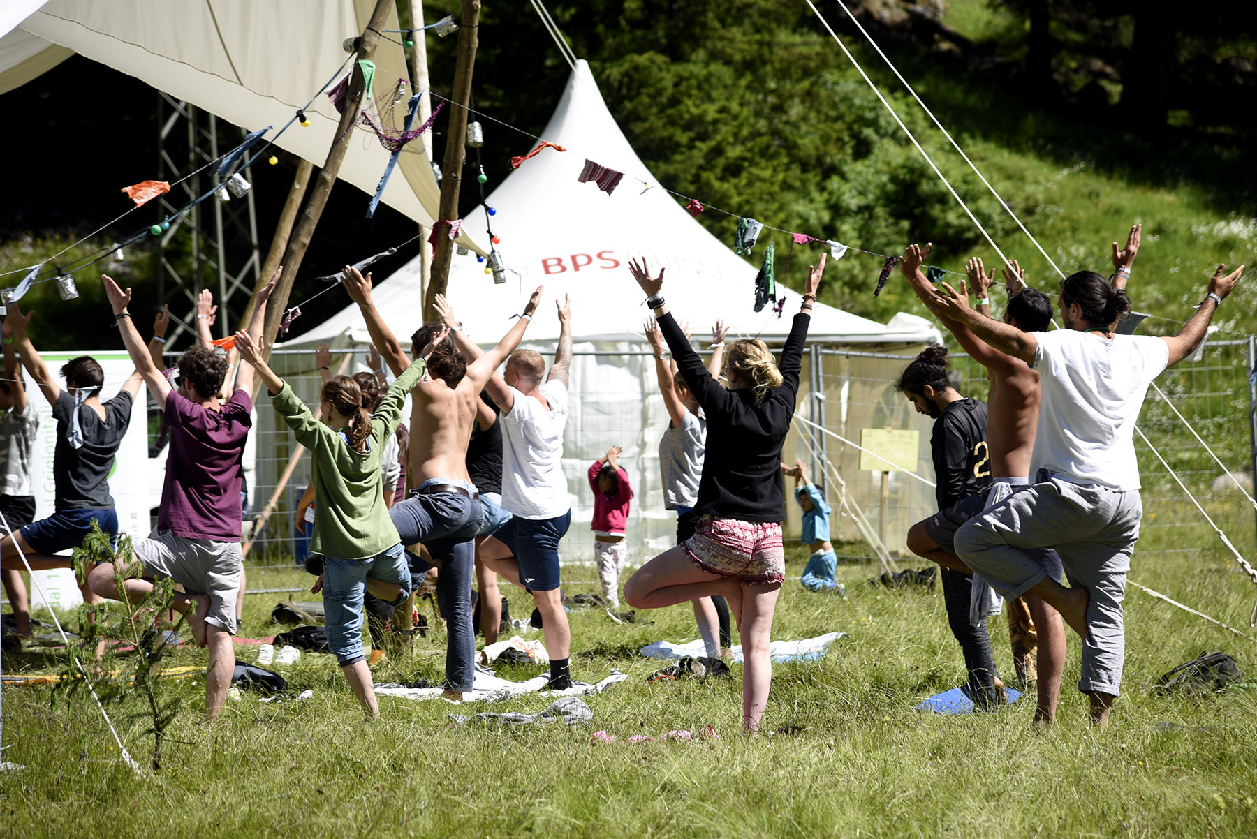 Dopo poche ore di sonno il freddo ci sveglia, usciamo dalle tende per andare a riscaldarci al sole appena sorto. Nell’aria aleggia un invitante profumo di brioche; gli organizzatori stanno portando la colazione a chi ancora non è uscito dal proprio rifugio notturno. Da lontano qualcuno invita alla lezione di yoga organizzata ai piedi del palco. Sperando in una giornata calda, il gruppo di partecipanti effettua il saluto al sole sui propri materassini, dopodiché per i più coraggiosi è l’ora di un bel bagno sotto la cascata.