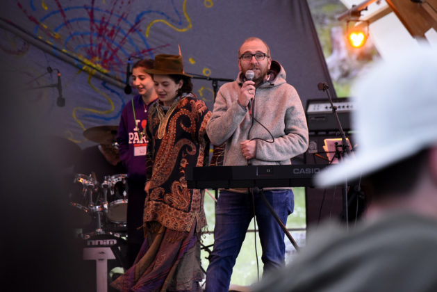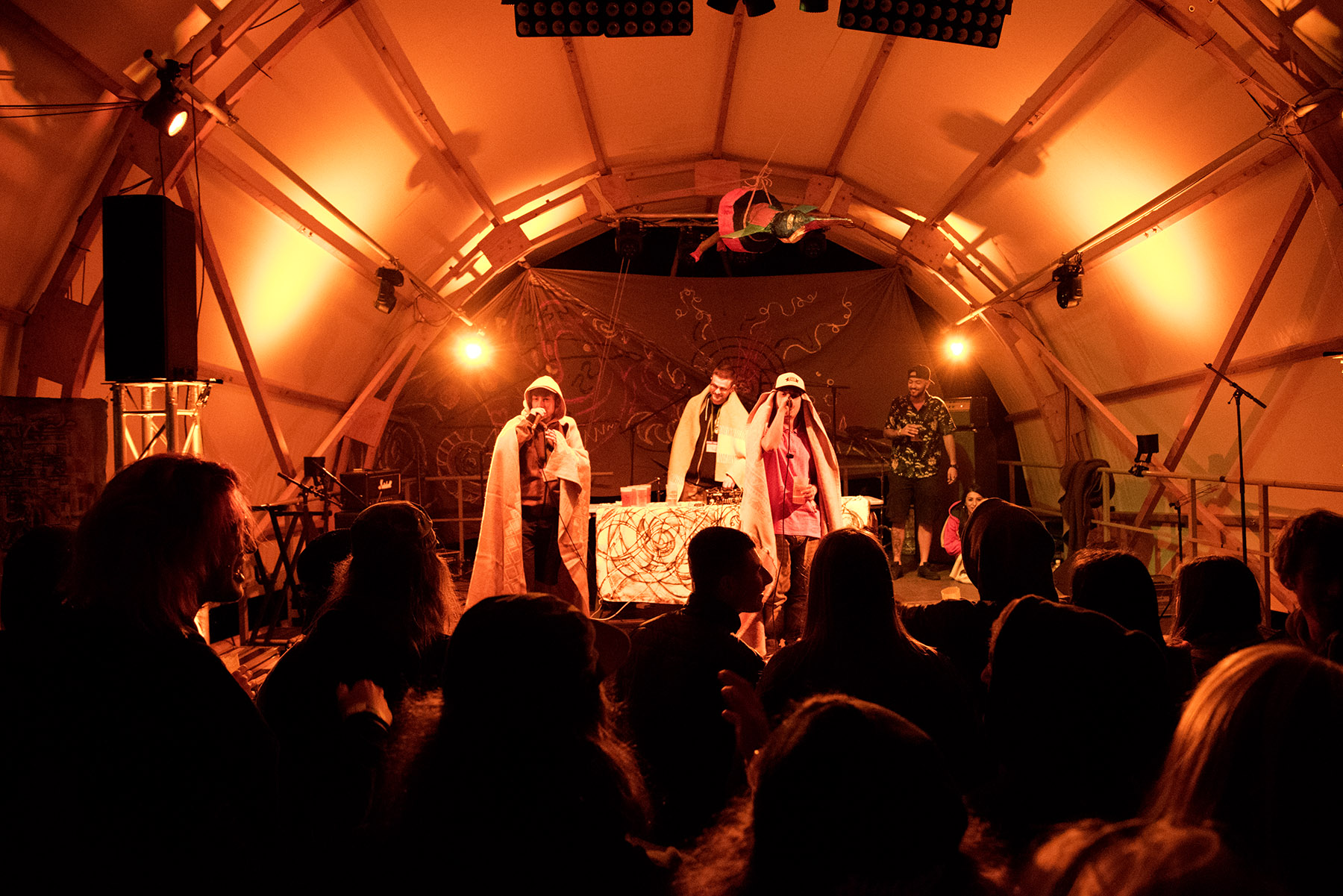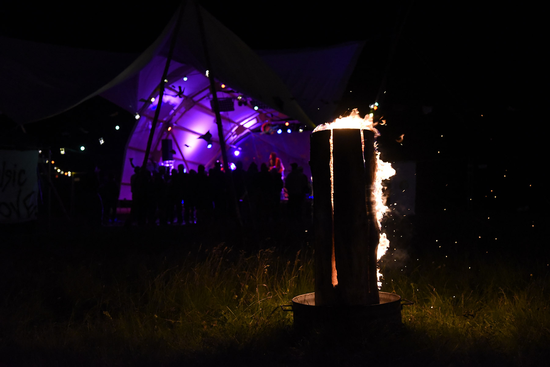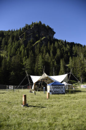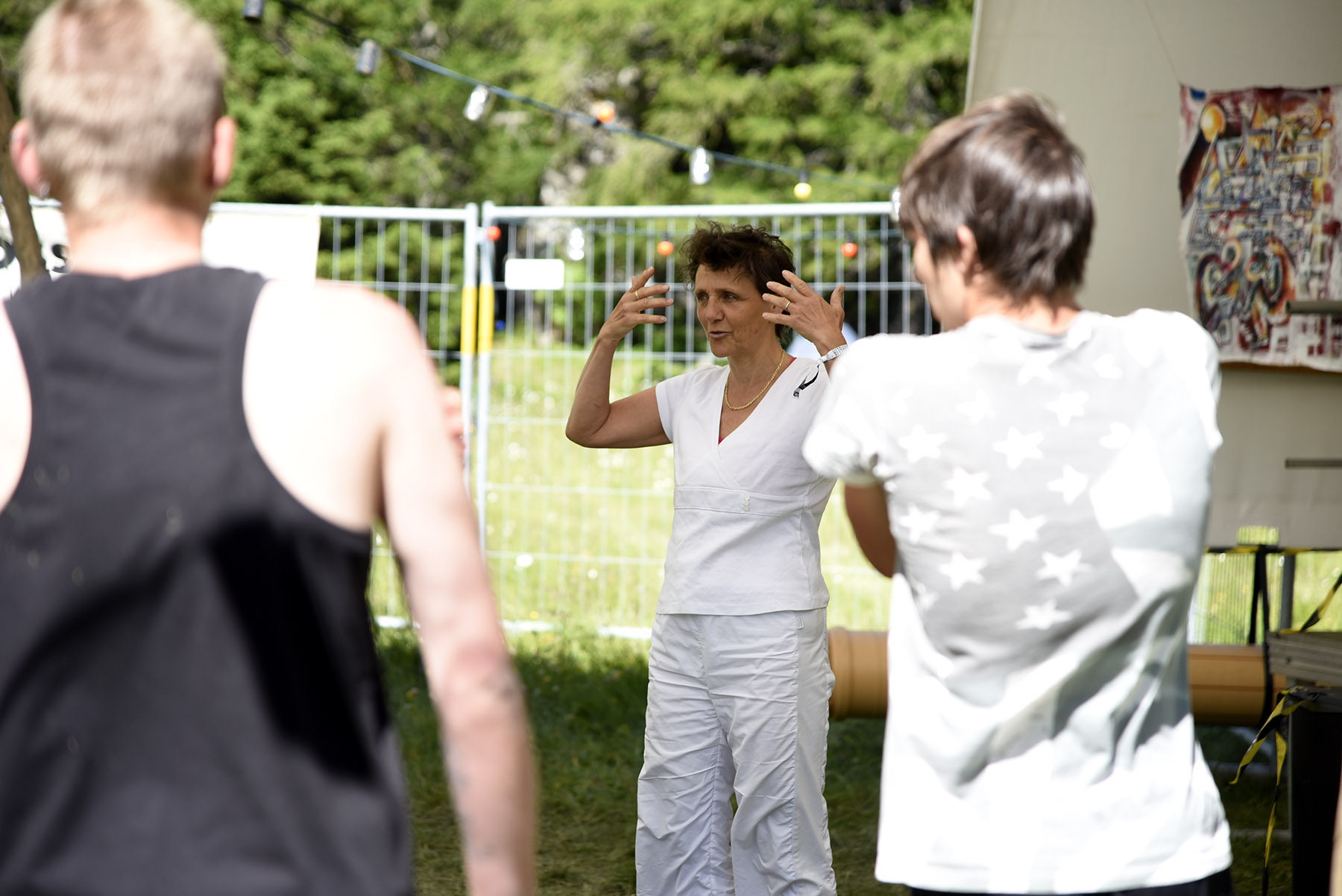 Dopo poche ore di sonno il freddo ci sveglia, usciamo dalle tende per andare a riscaldarci al sole appena sorto. Nell’aria aleggia un invitante profumo di brioche; gli organizzatori stanno portando la colazione a chi ancora non è uscito dal proprio rifugio notturno. Da lontano qualcuno invita alla lezione di yoga organizzata ai piedi del palco. Sperando in una giornata calda, il gruppo di partecipanti effettua il saluto al sole sui propri materassini, dopodiché per i più coraggiosi è l’ora di un bel bagno sotto la cascata.
