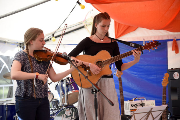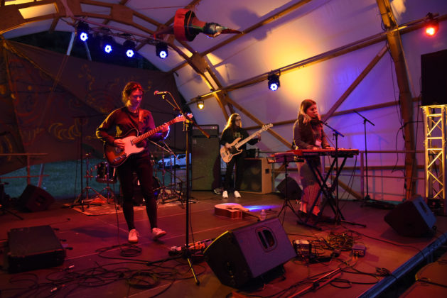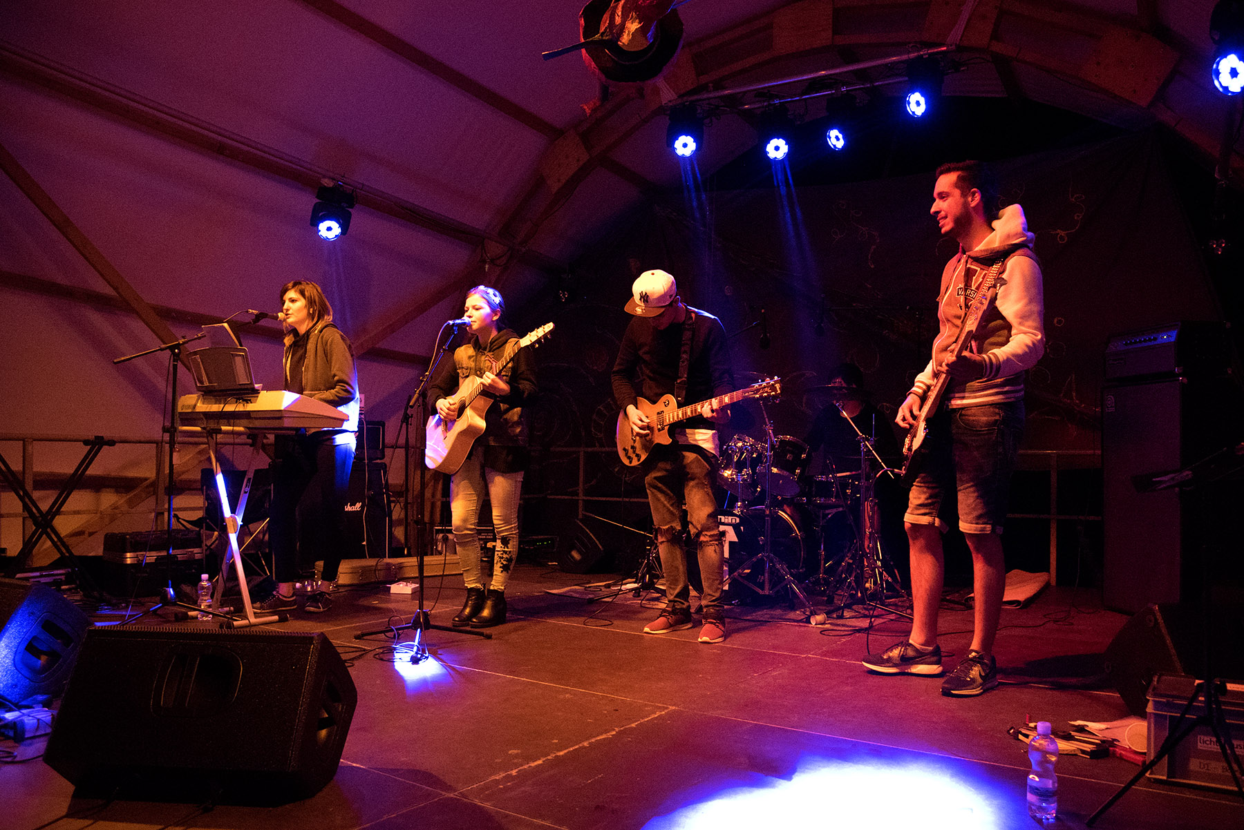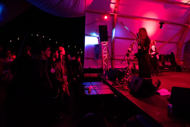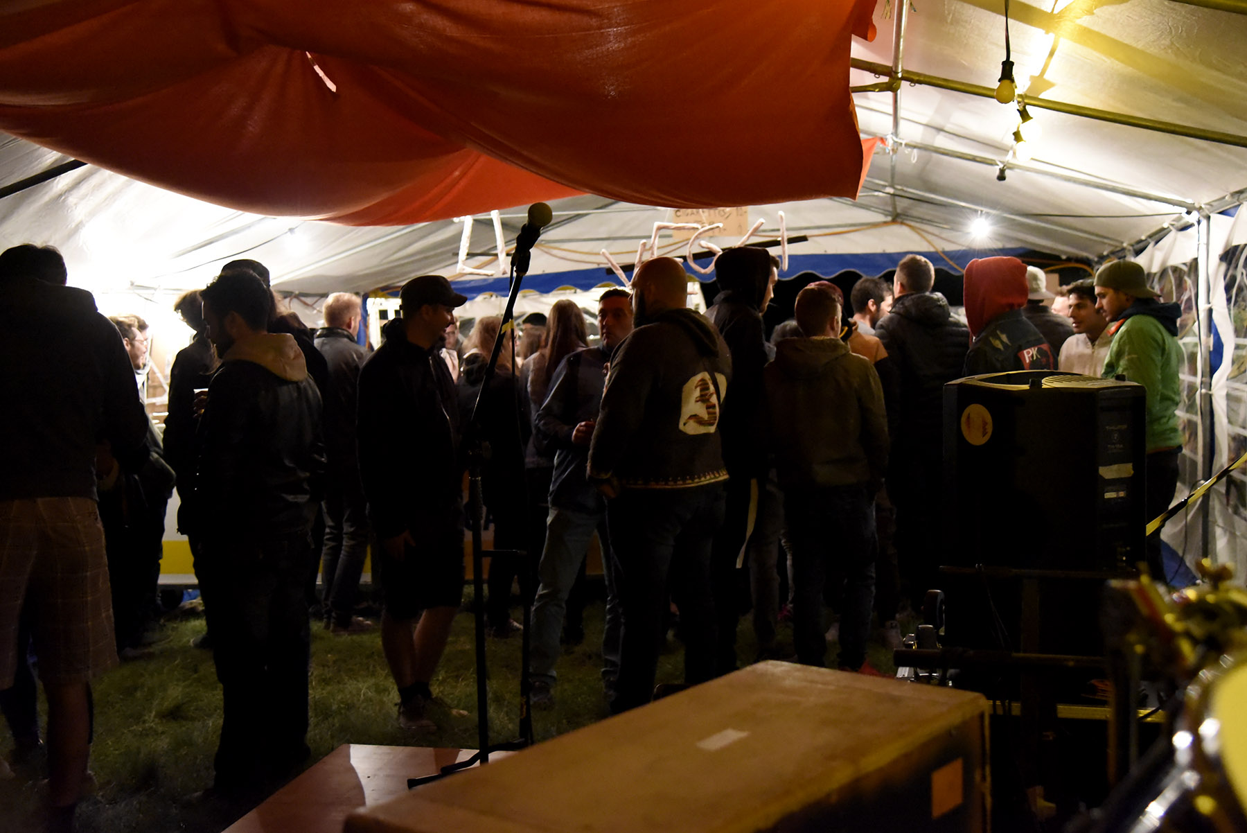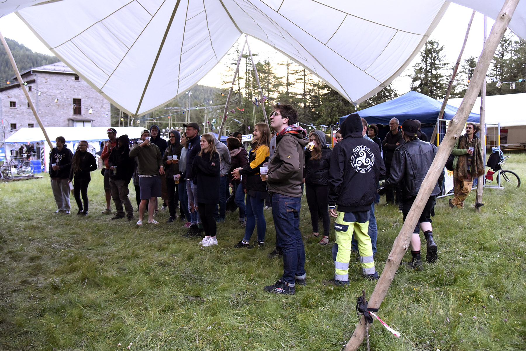 Dopo un aperitivo in compagnia di amici è l’ora di entrare nell’area recintata. Sono molti i tendoni davanti al palco dove più tardi suoneranno le band. Una parte è coperta nel caso arrivi un improvviso temporale, tutto è organizzato nei minimi dettagli. Il tempo di una birra e già gli organizzatori del festival danno il benvenuto al pubblico.