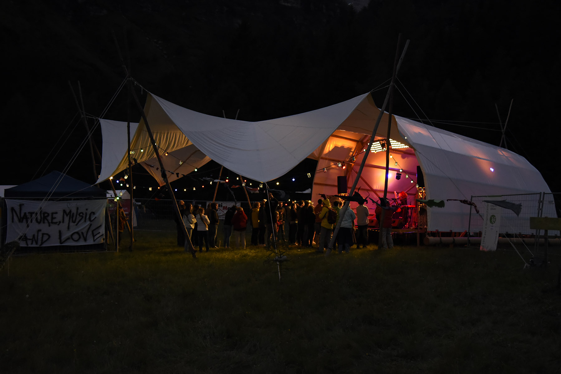 L’acqua del fiume è decisamente fredda e sono pochi quelli che provano ad entrare in acqua, mentre gli altri si godono il sole e la calma in riva al torrente. Dopo un sonnellino e una partita a frisbee si rifà vivo il profumo proveniente dalla cucina. Si infilano vestiti caldi, la temperatura comincia a calare, anche se, senza il vento freddo, si sta meglio della sera prima. Muniti di pullover e giacche si torna nella zona concerti, dove la prima band della serata sta per suonare, in un programma che prevede altri cinque gruppi per altrettanti generi musicali che ripagano pienamente il folto pubblico accorso. Anche la seconda serata si conclude con una jam session. Poi è di nuovo il momento di rifugiarsi in tenda in cerca di un po’ di riparo dalla brezza decisamente fresca.