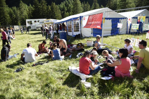 Al risveglio alcune tende sono già sparite, altre sono in fase di smontaggio. È strano pensare che il weekend sia già finito, mette un po’ di tristezza l’idea di dover salutare gli amici che vivono lontani, ma che per alcuni giorni ti sono stati di nuovo vicini e con i quali si sono condivisi momenti unici. In silenzio, forse ognuno preso dagli stessi pensieri, si rimettono le proprie cose nello zaino. Siamo pronti, insieme ci incamminiamo verso la stazione di Cavaglia. E’ un aggrapparsi all’attimo prima che ognuno riprenda la sua strada. Il treno è già in stazione, per chi deve andare oltre Bernina meglio non perderlo, il viaggio è ancora lungo. Gli ultimi abbracci e torniamo a casa.