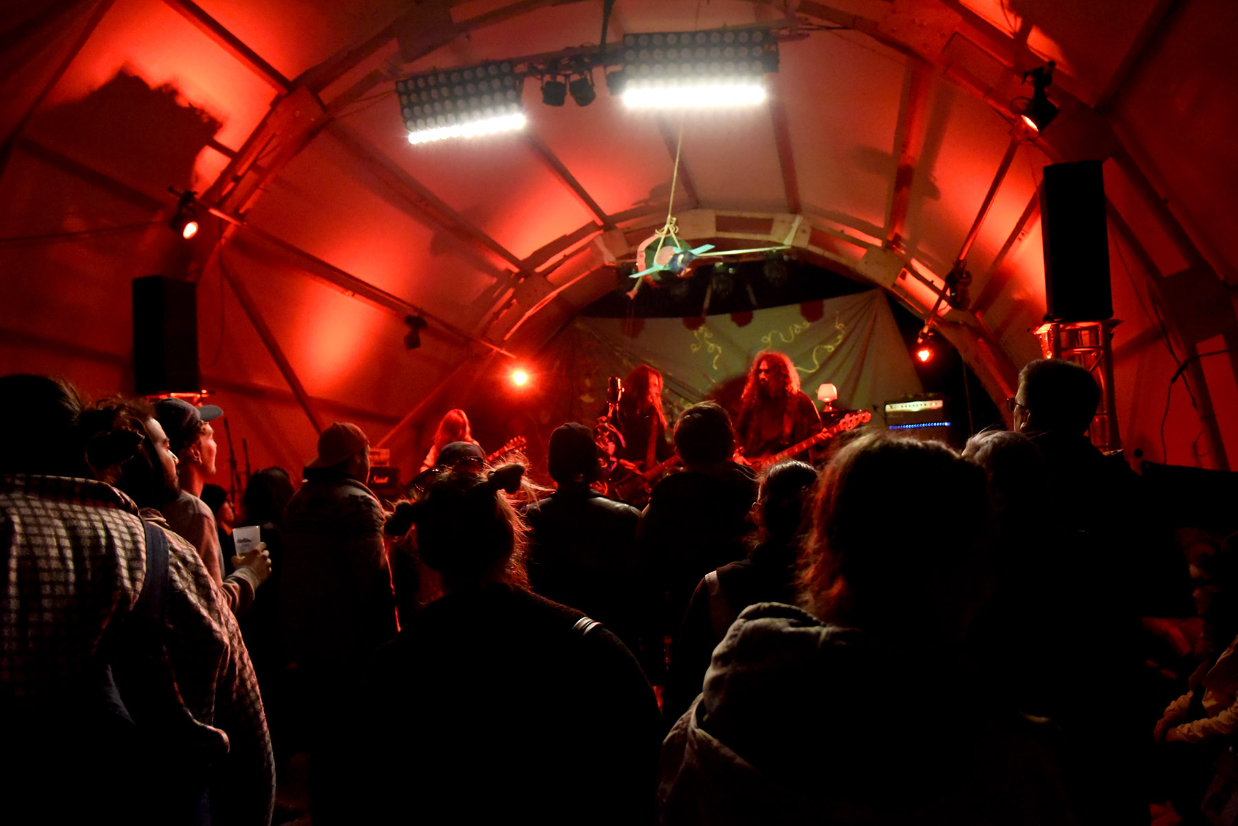 Nonostante la temperatura scenda in maniera inesorabile, l’atmosfera è unica e ci si lascia trasportare dalla musica che prosegue fino a notte tarda per sfociare in una interminabile Jam Session. E’ l’ora di rientrare nella propria tenda per rifugiarsi nel sacco a pelo, sperando di trovare un po’ di caldo. Fuori riecheggiano le voci, le risate e la musica delle tende vicine. Ci si addormenta così lasciandosi cullare da suoni rassicuranti.