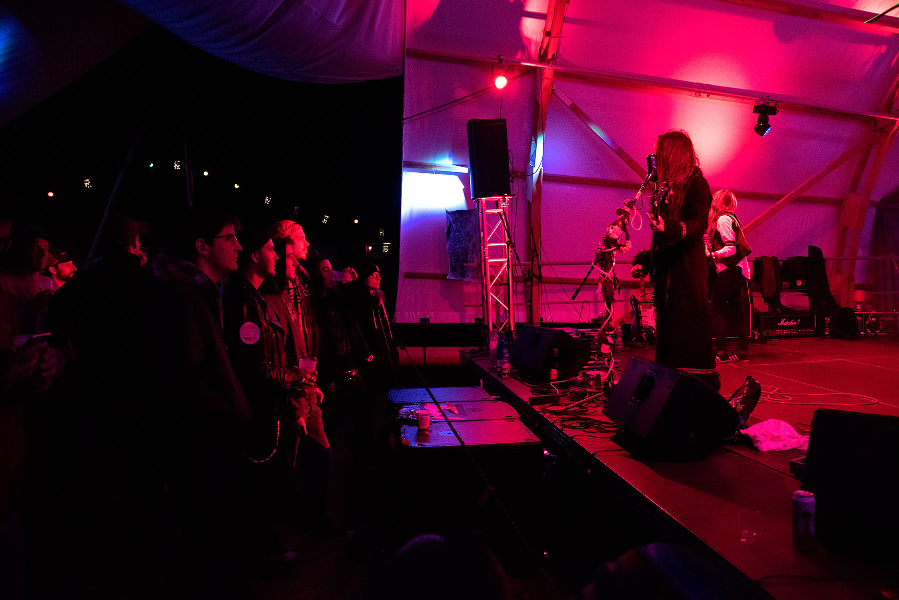 Dalla stazioncina ci si incammina verso “Li Vegli”, zona dove si trovano i capannoni dell’open air. Da lontano risuonano i bassi delle band impegnate con il soundcheck e si inizia a percepire un’atmosfera speciale. Dopo aver pagato il biglietto si cerca un luogo dove montare la tenda, tra quelle già montate e quelle che sono ancora in fase di montaggio. Si nota subito la differenza tra le persone abituate a campeggiare e quelle che non sanno da che parte iniziare… ed è spontaneo dare una mano alle persone appena conosciute.