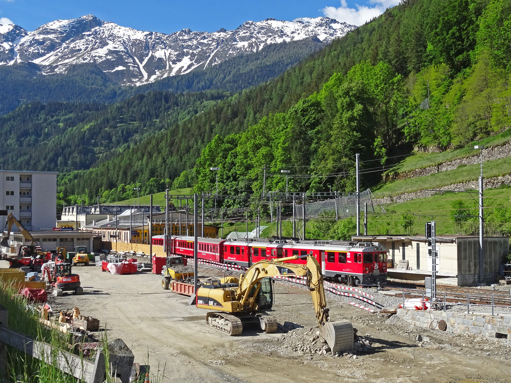 Dopo la messa in esercizio del doppio binario in zona Sanzini e Pradei che permette gli incroci dei convogli della Ferrovia del Bernina, i lavori proseguono. È la volta, ora, della ristrutturazione del binario principale alla stazione di Poschiavo e la costruzione della pensilina che coprirà l’intero binario nella zona di accesso ai treni.