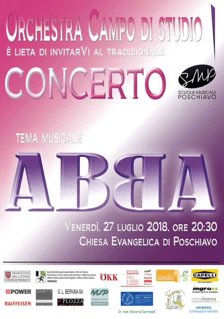 Alle 20.30, presso la Chiesa Evangelica, il concerto allievi del campo di studio musicale dal titolo “Abba”.