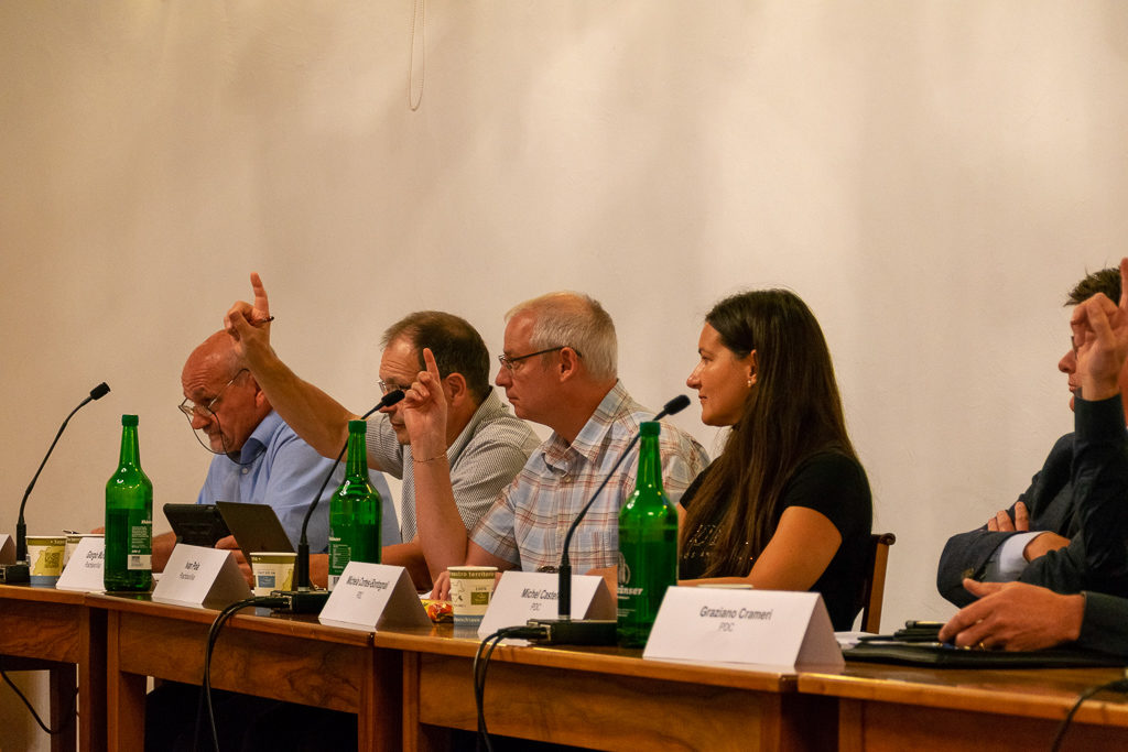 Tra i consiglieri presenti in aula non sono mancati dei momenti di ilarità in riferimento alle singole voci: “Omissione di tagliare rami e arbusti che sporgono sulla strada o sul marciapiede, CHF 50.00; Omissione di eliminare cornici di neve sporgenti e formazioni di ghiaccioli sui tetti, chili pünti chi ta riva giò e i ta trapàsa, CHF 50.00″; Formazione di ghiaccio sul suolo pubblico a causa di grondaie otturate, al sa stöpa la canal, CHF 50.00… recitava come una poesia il presidente di Giunta Reto Capelli. E ancora: “Soddisfare i bisogni corporali su suolo pubblico in zona insediata o su suolo privato di terzi, CHF 50.00; Negligenza nella custodia di animali che creano pericolo danno o disturbo, Inosservanza dell’obbligo di sorveglianza su cani, Inosservanza dell’obbligo di portare il cane al guinzaglio secondo quanto previsto dalla legge comunale sui cani, tutto a 100.00 CHF … “, e via di questo passo.
