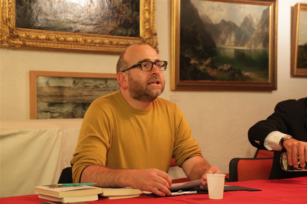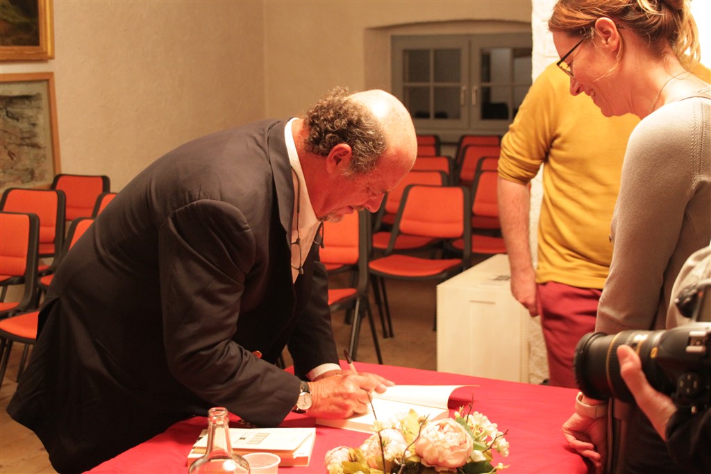 Ciò che mi ha particolarmente colpito nell’ultimo incontro di Poschiavo è stata ancora la capacità dell’autore di disvelare parti intime del suo carattere e di spiegare la nascita dei suoi romanzi a piccole dosi, arricchendo così la platea con sempre più particolari e aneddoti della propria vita. Interessante, ad esempio – soprattutto da un punto di vista psicologico – , è venire a conoscenza di come Tuena iniziò a scrivere il suo primo romanzo dopo aver scoperto che la sua ex fidanzata d’università aveva già pubblicato un romanzo; a quel punto in lui scattò la molla che lo spinse – in un moto di stizza ed orgoglio – a scrivere il suo primo romanzo di fantasia, pubblicato più tardi con il titolo Lo sguardo della paura (Leonardo, 1991), vincitore del Premio Bagutta “Opera prima” nel 1992.