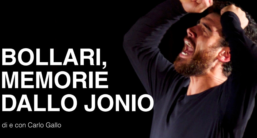 Con Bollari, Carlo Gallo ci porta sulle coste desolate del Mar Jonio, dove immersi nel silenzio tra i colori della macchia Mediterranea, è divenuto sempre più raro assistere a quel miracolo che avveniva tra i pescatori e il mare, un fenomeno che veniva indicato col il termine “Bollari”. Una parola antica tradotta nel suono gutturale dei pescatori per annunciare l’avvistamento dei tonni a largo delle coste, un urlo di gioia a cui seguivano lanci e fragori di bombe in mare, una pratica illegale diffusa tra i pescatori dello Jonio al fine di ricavare più pesce possibile in poco tempo e sopperire ai lamenti dello stomaco. Lo spettacolo narra la contesa di mare tra due anziani pescatori e le vicissitudini di quella che fu la “Cecella”, il miglior peschereccio dello Jonio, negli anni del fascismo fino alle porte della seconda guerra mondiale.