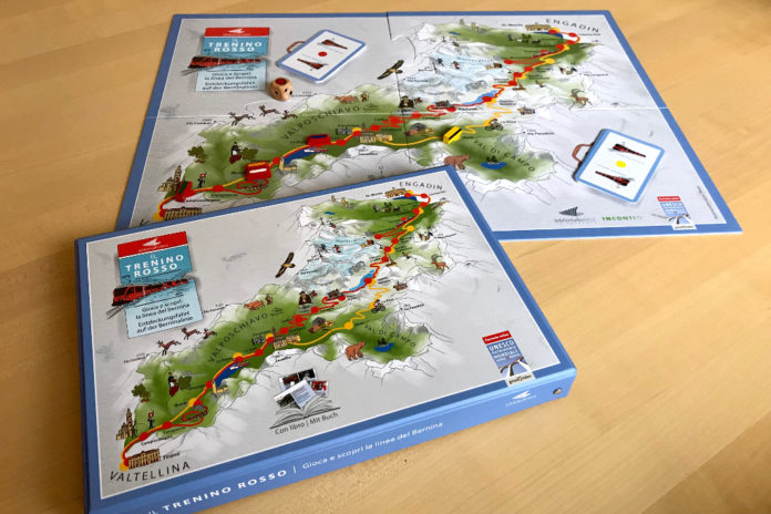“Il Trenino Rosso • Gioca e scopri la linea del Bernina” è un gioco da tavolo divertente e istruttivo al tempo stesso, rivolto a giocatori di tutte le età. Prevede, infatti, percorsi diversificati e sfide a vari livelli, che implicano soprattutto fortuna per i più piccoli e una buona dose di conoscenze sulla nostra ferrovia da parte di giovani e adulti.