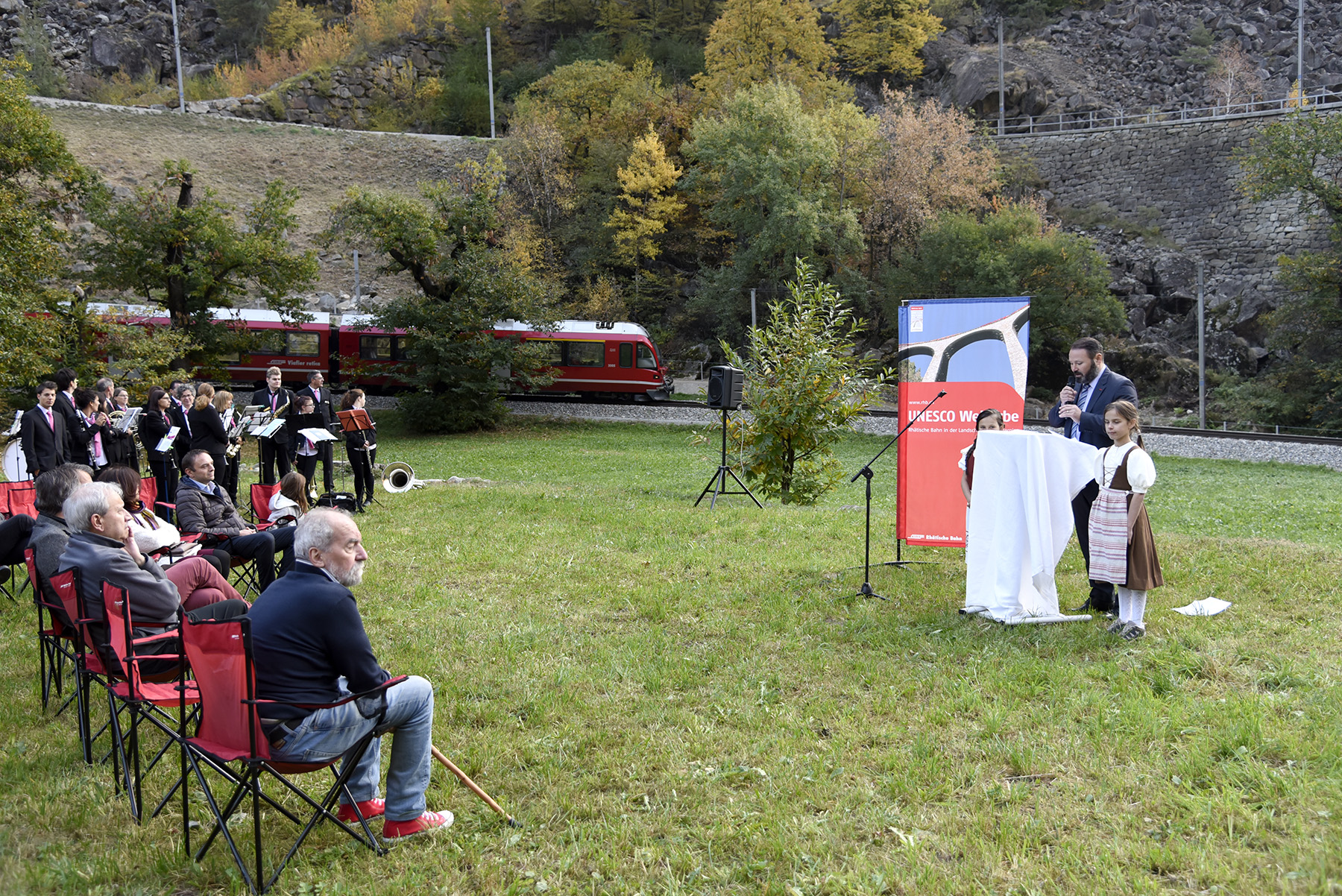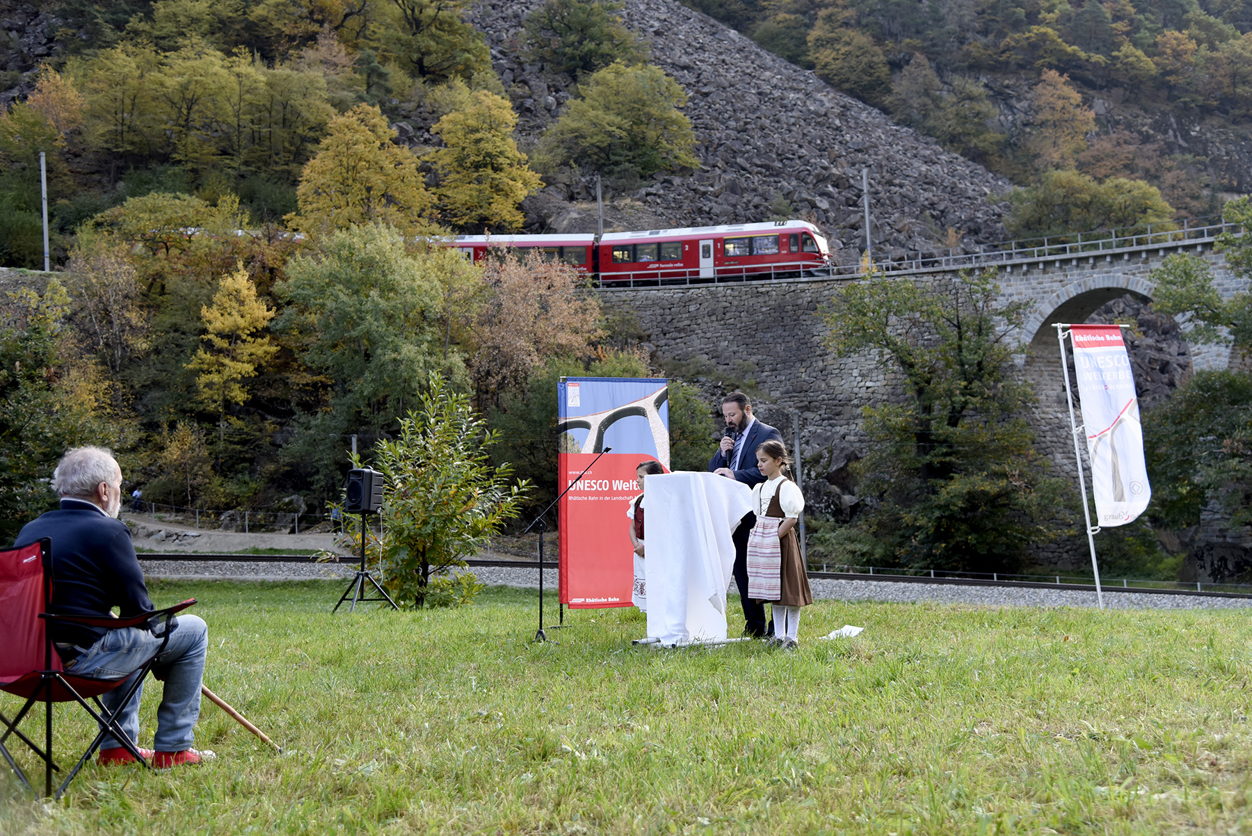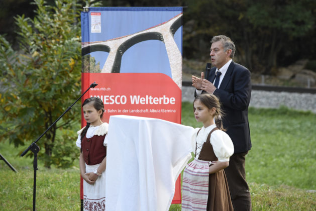 Nel suo discorso il Sindaco Arturo Plozza ha avuto parole di ringraziamento nei confronti della Ferrovia Retica e di Valposchiavo Turismo per il contribuito garantito alla realizzazione del nuovo sentiero turistico, sicuramente gradito anche dalla popolazione indigena. Plozza ha inoltre ricordato con piacere l’inserimento della tratta Albula-Bernina nel Patrimonio mondiale UNESCO, avvenuta dieci anni fa, e della quale il Viadotto di Brusio è uno degli elementi di spicco.