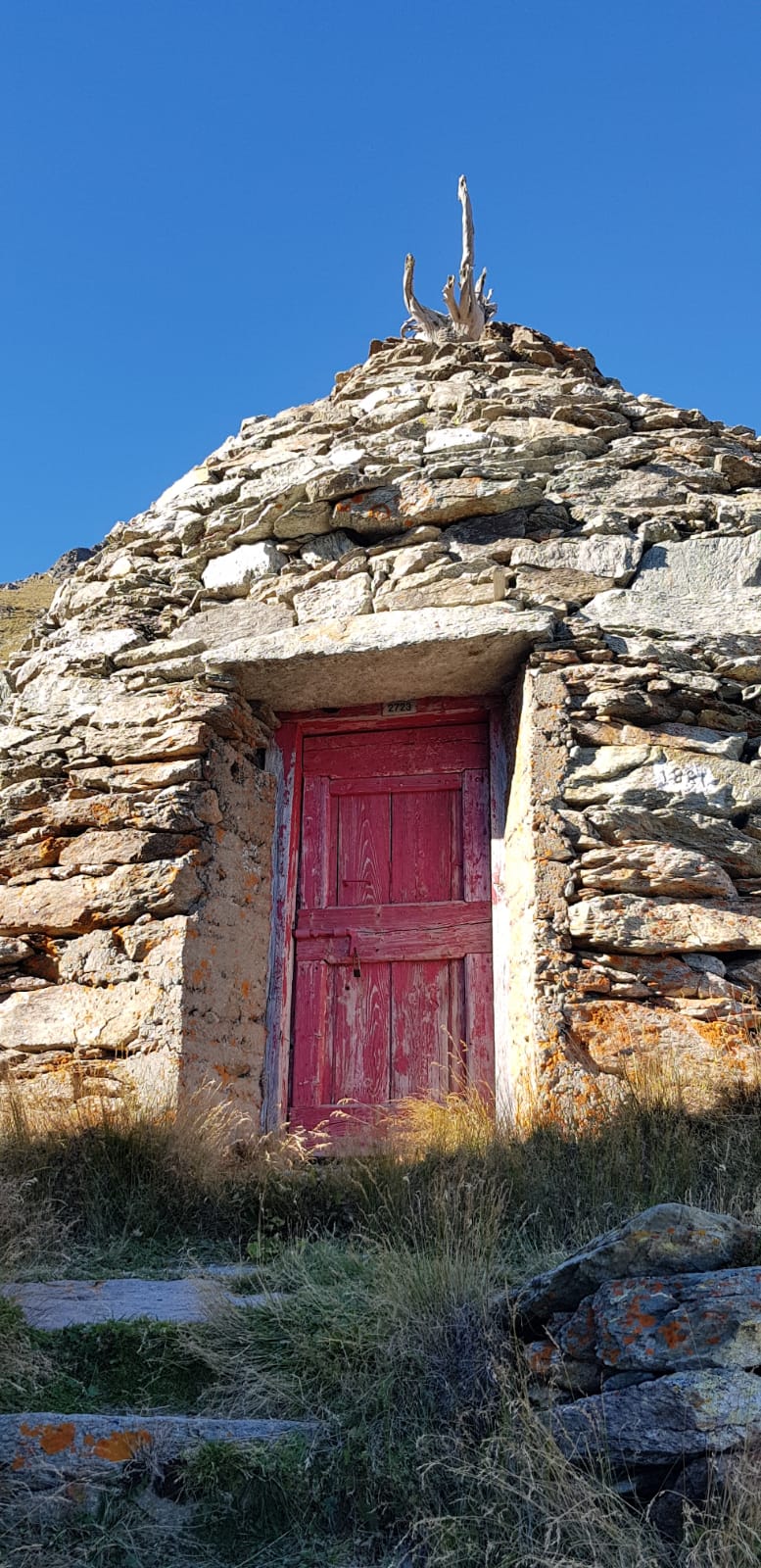 Pino non sapeva della mia visita. L’ho sorpreso davanti a un piatto di risotto, seduto all’entrata della sua dimora estiva. Occhiali scuri, aria distinta da consumato gerente di genti d’ogni ceto. Abbiamo pranzato insieme. Ho accettato di buon grado un piatto di chiscöi croccanti che stavano preparando agli ultimi due avventori. “Ai’à fa scià bon la s’cièta, pròvai”, mi ha rassicurato, versandomi un bicchiere di un nero d’avola siciliano poco raccomandabile a quelle altitudini. “Viva, e grazie par la visita!”. Più tardi siamo passati ad un nebbiolo di Valtellina d’annata di tutt’altro spessore.