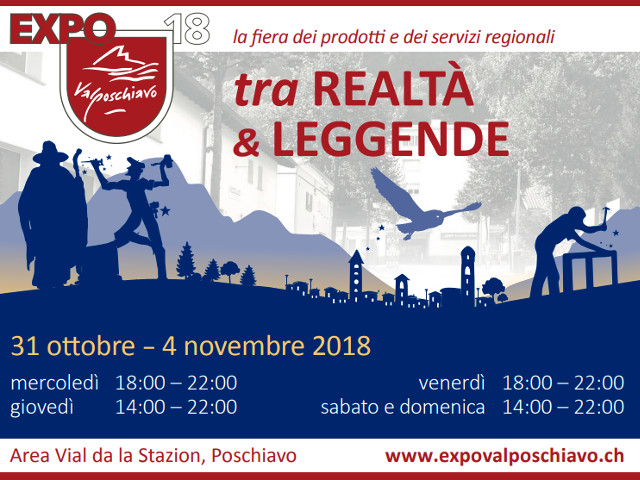 Expo Valposchiavo ha aperto i battenti mercoledì scorso e chiuderà le porte domenica 4 novembre alle ore 22.00. Oggi le porte si apriranno alle ore 18.00 per chiudersi alle ore 22.00, mentre sabato e domenica la fiera espositiva sarà aperta con orario continuato dalle ore 14.00 fino alle 22.00.