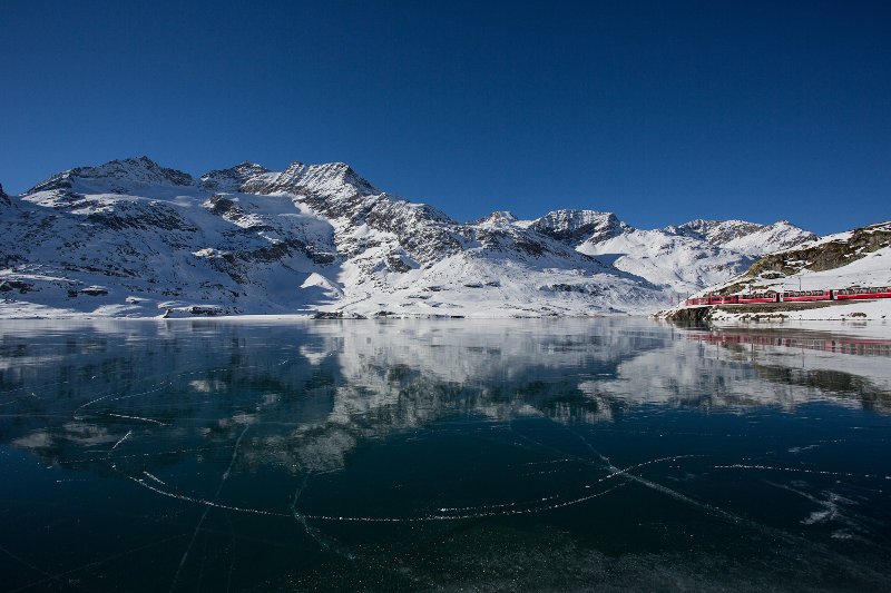 Con le condizioni ideali all’inizio dell’inverno sul Lago Bianco, lungo il Passo del Bernina, si forma del ghiaccio nero. Fenomeno questo che ha già attratto numerosi visitatori e curiosi. In occasione delle prossime festività di Natale e Capodanno il lago ghiacciato sarà per la prima volta aperto ufficialmente ai pattinatori. Un’esperienza in alta montagna accessibile in modo semplice anche a chi non scia.