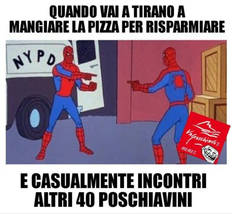 All’inizio di quest’anno, precisamente il 5 febbraio, avevamo parlato della pagina satirica “Vignette bregagliotte”, presente sul social network “Facebook”, e delle sue punzecchiature alla Valposchiavo. Il giorno successivo alla pubblicazione del nostro articolo, un gruppo di ragazzi valposchiavini non aveva voluto essere da meno, ed ha così creato la pagina “Valposchiavo’s memes“. “Se lo fanno e ci riescono i bregaiot, – è stato scritto nel post di lancio della pagina – non possiamo mica essere da meno”. A distanza di 10 mesi li abbiamo intervistati; da questo incontro virtuale è nata poi l’idea di ospitare sulla prima pagina del nostro giornale le loro vignette, fiduciosi del fatto che i nostri lettori possano apprezzare questa novità, dalle quale, tra l’altro, è scaturita questa prima vignetta.