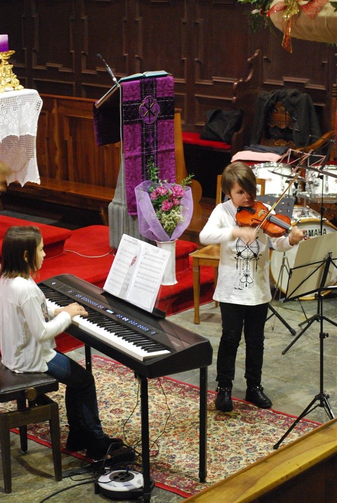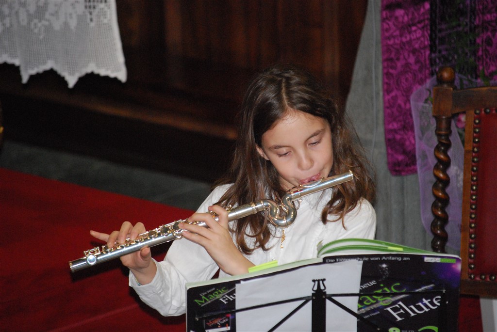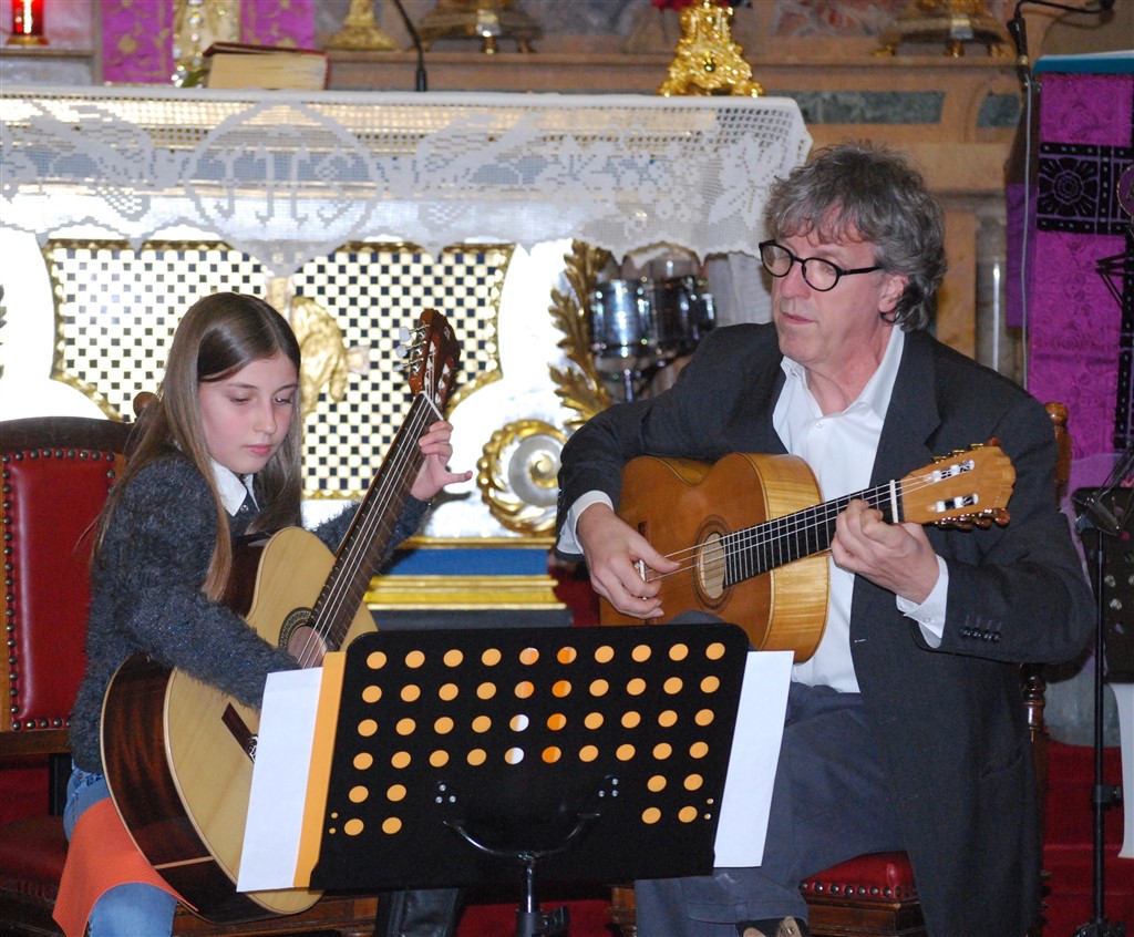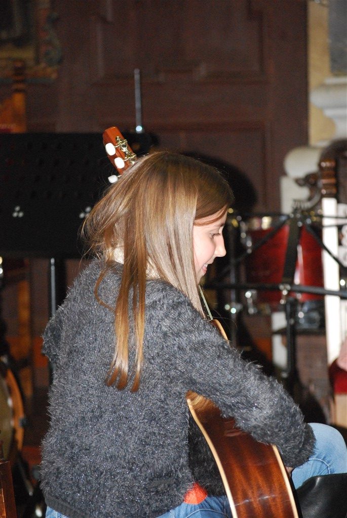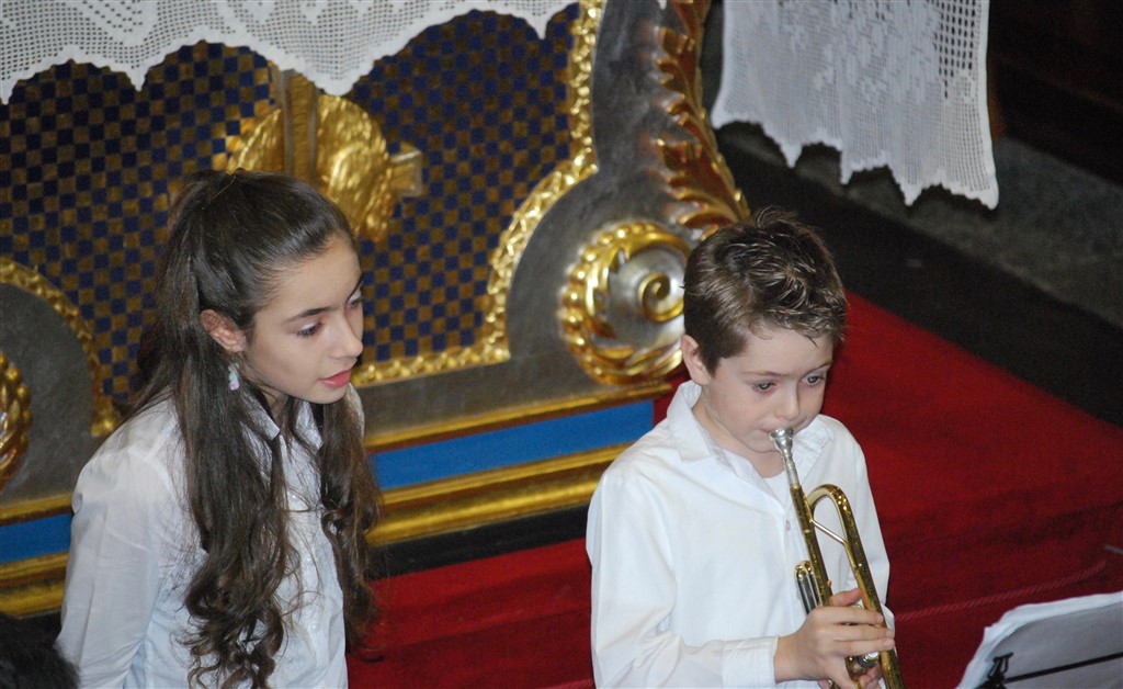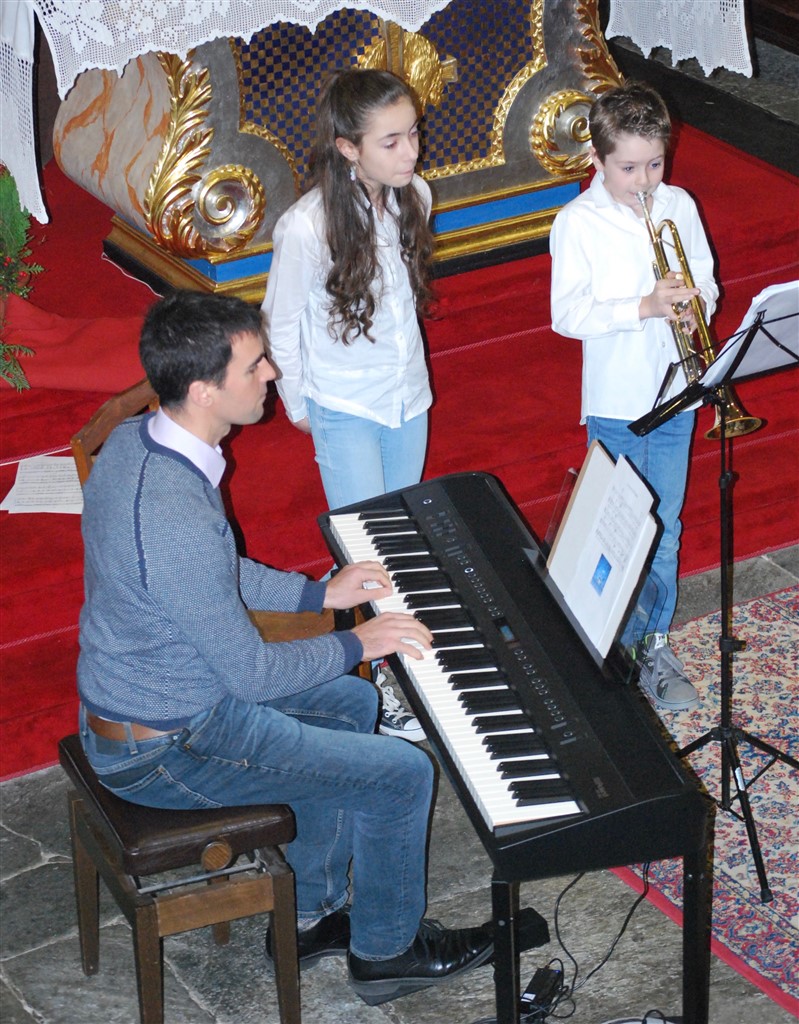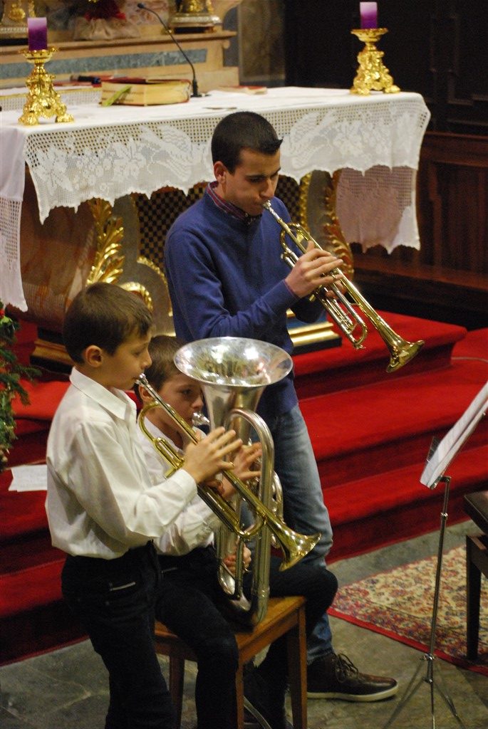 I piccoli musicisti, forse alla loro prima esibizione in pubblico, con tanta voglia di farcela, intercalano le loro esibizioni a quelle dei più grandi. Il loro momento finisce troppo presto, ringraziano con un inchino, si emozionano per l’applauso, indugiano un attimo prima di lasciare il posto ai compagni. I grandi, abituati ad esibirsi in pubblico, ogni anno con un anno in più, suonano con sicurezza e bravura.