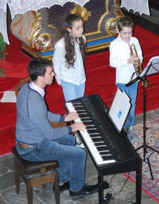 I piccoli allievi della Scuola di Musica di Brusio sono pronti. Il cuore batte forte, gli occhi gioiscono per i tanti spettatori venuti ad ascoltarli.