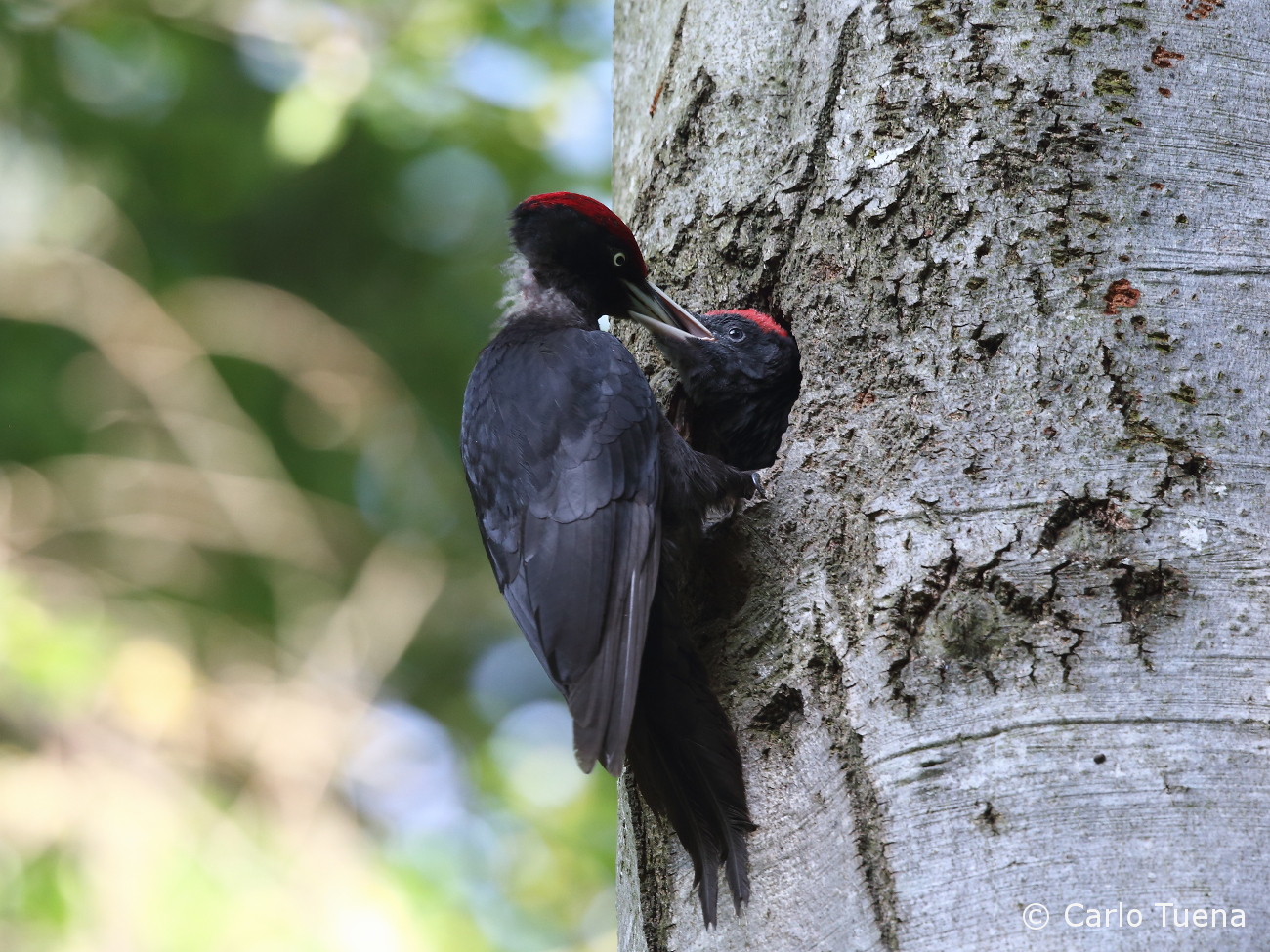 Foto di Carlo Tuena Becco nel becco Di Il Bernina - 11 Gennaio 2019 0 279 Picchio nero maschio imbocca il piccolo.