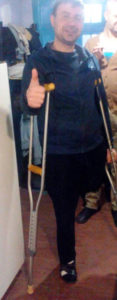 Particolarmente apprezzate le stampelle date a un giovane che ha perso una gamba
