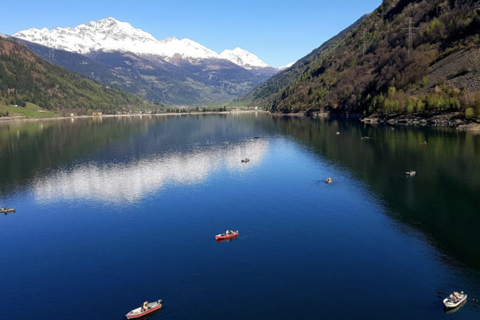 Una suggestiva foto scattata dall’elicottero della prima uscita stagionale dei pescatori.