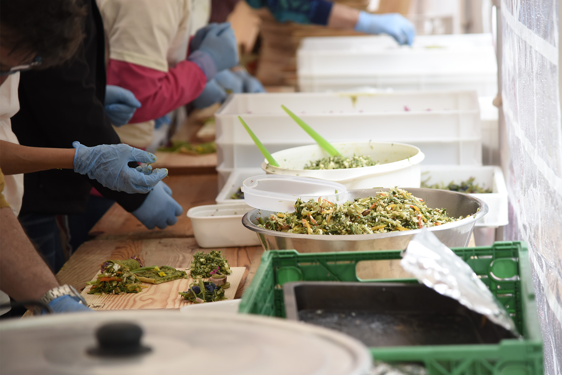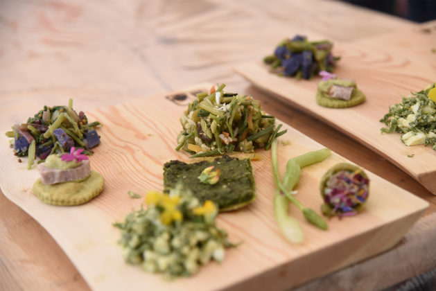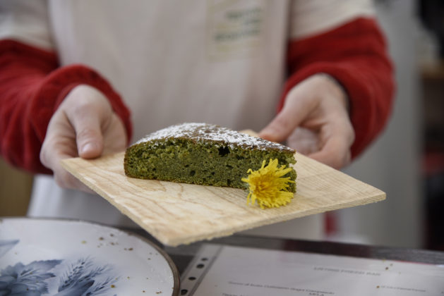 Atteso come sempre il pranzo a base di erbe spontanee preparato da Mariagrazia Marchesi e dalle sue aiutanti, alle quali si è aggiunta, per questa particolare occasione, anche la conosciuta cuoca di cucina naturale Meret Bissegger, creatrice di due dei nove assaggi di cui era composto il pranzo.