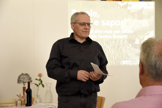 In prima serata è invece stata la volta della lettura ad alta voce per adulti. Ad interpretare un racconto di Laura Pariani “Il riso nasce nell’acqua e muore nel vino” sono state Serena Bonetti e Alessandra Jochum-Siccardi. La scelta è caduta sul brano dove Nives e la sua amica si trovano al ristorante e parlano. I canti delle mondine, assieme ai profumi provenienti dalla cucina, hanno creato un’ambientazione suggestiva, coronata, per la sorpresa dei presenti, da un piatto di risotto accompagnato da un buon bicchiere di vino.