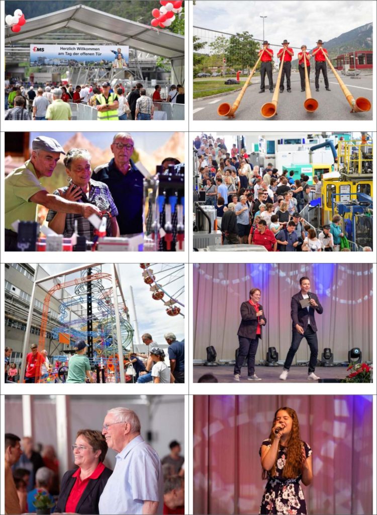 Sabato scorso, EMS-CHEMIE ha aperto le proprie porte al pubblico, giunto numeroso alla manifestazione. In una giornata caratterizzata da temperature estive, i 13’800 visitatori e i circa 150 ospiti dai settori dell’economia e della politica hanno avuto modo di ammirare gli impianti di produzione del più importante datore di lavoro e formatore di apprendisti dei Grigioni e di immergersi nell’affascinante mondo delle plastiche speciali. L’atmosfera festosa ha contagiato gli animi di tutti i partecipanti alla manifestazione sul sito produttivo dell’azienda, che ha accolto anche numerose attrazioni, un variegato programma di spettacoli di tipo locale e un’abbondante offerta gastronomica messa a disposizione da GastroGraubünden.
