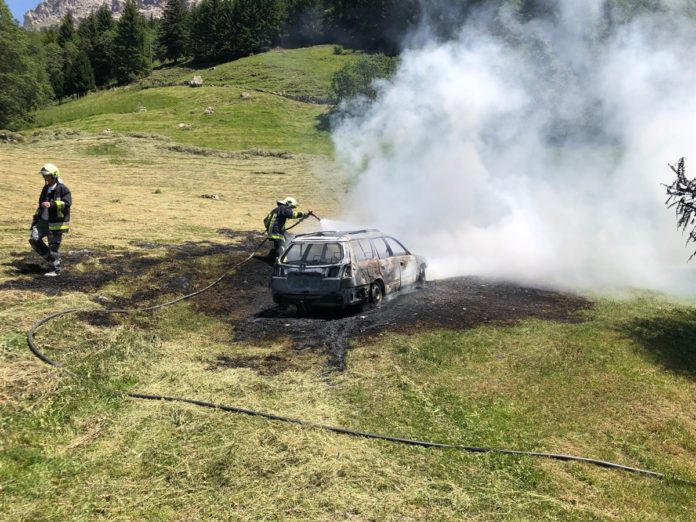 Nel primo pomeriggio di giovedì, sul monte di Platta, un veicolo ha preso fuoco. I pompieri, prontamente intervenuti, sono riusciti a spegnere le fiamme e ad evitare che il fuoco si propagasse nei prati adiacenti.