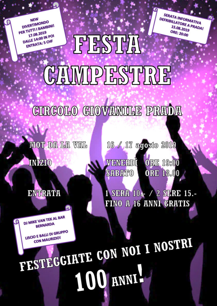 Dalle 19.00 il via alla tradizionale festa Campestre di Prada.