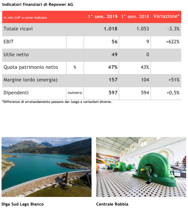 Il Gruppo Repower AG ha conseguito nel primo semestre 2019 un buon risultato, realizzando un totale ricavi di 1018 milioni di franchi. Il risultato operativo (EBIT) si attesta a 56 milioni di franchi. Al risultato positivo hanno contribuito essenzialmente l’andamento positivo dei prezzi dell’energia elettrica, la buona performance della centrale a ciclo combinato gas-vapore di Teverola e il trading.