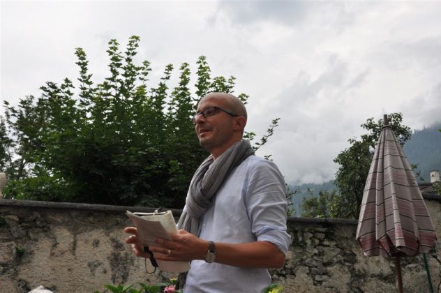 Come di consuetudine, il concerto è stato aperto da Kaspar Howald che ha dato il benvenuto ai presenti e fornito alcune informazioni riguardo la casa Gay. Quest’edificio fa parte di una delle tre case Mini, ed è stato costruito nel 1826. Inoltre, come conferma la targhetta presente all’entrata della casa, il rinomato scrittore Wolfgang Hildesheimer ci ha vissuto sino alla morte. Prima di lasciare spazio al musicista, Kaspar Howald e Paola Gianoli hanno letto l’ultimo paragrafo di un testo di Hildesheimer (datato 1961) in cui quest’ultimo descriveva la Valposchiavo.