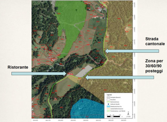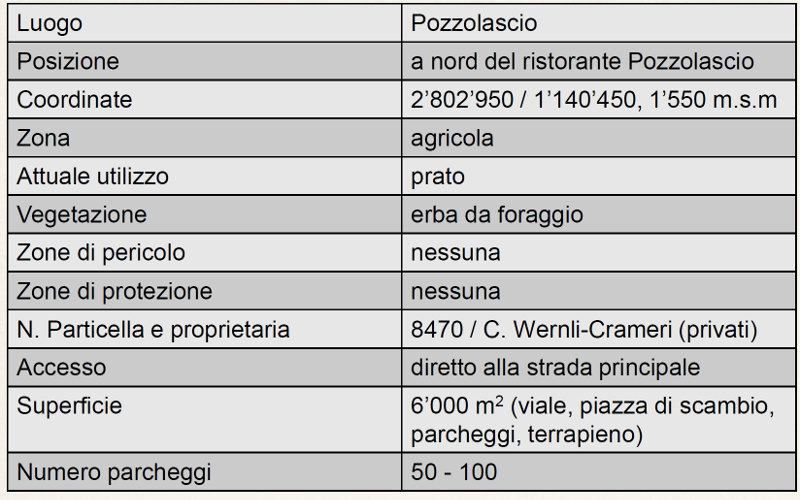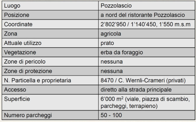 Anche con la realizzazione del parcheggio, è stato inoltre sottolineato, le attività forestali, come lo stoccaggio di legname, continueranno ad essere presenti a «Sfazù», come da concessione cantonale. Per aumentare la sicurezza, è stato notato, si assicurerà un campo visivo sufficientemente ampio dall’area di parcheggio prevista (90 – 100 m di vista libera). L’uscita è progettata in modo tale che gli autocarri possano entrare ed uscire senza attraversare la corsia a doppio senso. Il Cantone dei Grigioni, inoltre, con un progetto separato, prevede di migliorare la curva a sud del ristorante a Pozzolascio.