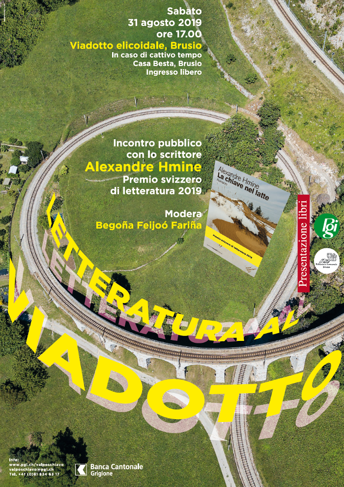 Nella splendida cornice elicoidale del Viadotto la Biblioteca comunale di Brusio e la Pro Grigioni Italiano organizzano un incontro letterario ospitando lo scrittore Alexandre Hmine, recente vincitore del Premio svizzero di letteratura 2019 con l’opera La chiave nel latte.