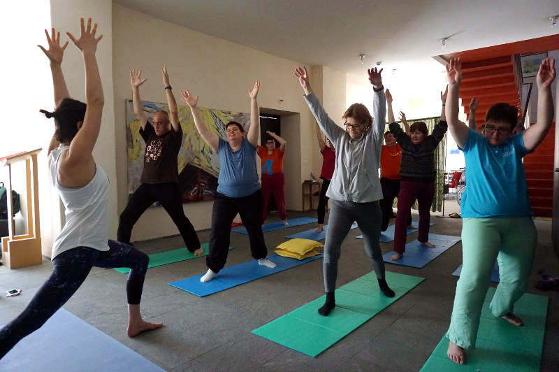 Corina: sento i muscoli che lavorano, muscoli che ho dimenticato di avere, però non vengano strapazzati e tutti questi esercizi aiutano a farmi sentire più stabile con l’equilibrio. Monica: alcuni esercizi sono un po’ difficili, alcuni più facili, ma mi rilasso lo stesso. Mi piace di avere questo momento per me. Sonia: i movimenti fatti a piano, non bruscamente, mi fanne bene, ho già provato una volta a fare yoga nella mia vita, ma non ha funzionato, ma questa volta sono riuscita. Sono molto contenta per me! L’esercizio del respiro è interessante e ci permette di entrare nel prossimo esercizio. Cristina: questi esercizi mi danno energia anche se faccio fatica a farli! Nuria: io ho imparato “il ponte” che una volta non riuscivo! Ho fatto l’esercizio dei “tre occhi”! Per fare la respirazione ho usato il metodo di chiudere 2 occhi e guardare con il terzo o l’incontrario. Anita: sento i muscoli, ho mal di testa, il rilassamento mi piace e mi fa bene! Bruna: quando sono stanca mi addormento, ma quando non sono stanca mi piace tanto partecipare agli esercizi che riesco fare seduta o in piedi. Faccio troppo fatica a sdraiarmi sul tappeto. Debora: a me piace tanto a fare il rilassamento e imparare bene la respirazione, ho sudato tanto ma sono felice di non aver preso l’asma. È bello; perché ogni persona lavora per il suo corpo. Daniele: mi rilassa molto, respiro aria fresca e mi sento leggero. All’inizio facevo fatica a concentrarmi ma adesso riesco per un bel momento.