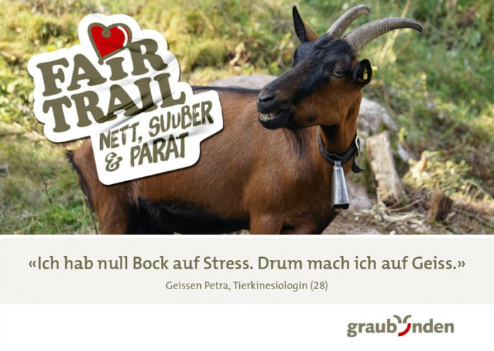 Con la campagna “Fairtrail” il Cantone promuove la tolleranza e una coesistenza serena tra amanti della mountain bike ed escursionisti lungo i sentieri escursionistici e i trail grigionesi. La campagna d’immagine non ha bisogno di puntare il dito. Fairtrail punta su una simpatica autoironia e su una bella fetta di umorismo grigionese.