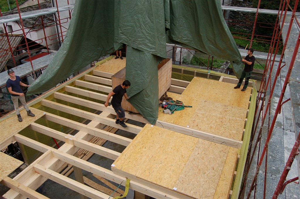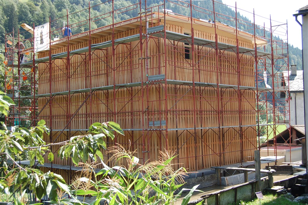I lavori sono cominciati in maggio con la demolizione della falegnameria esistente e la posa delle fondamenta del nuovo edificio. Parallelamente sono state tagliate e lavorate le tavole di legno per le pareti. Nel corso dell’estate è stata eretta la struttura e realizzate le pareti intrecciate. La costruzione grezza è ora pressoché finita. Nelle prossime settimane si lavorerà agli interni, che saranno poi allestiti durante l’inverno. Tutti i lavori sono affidati a ditte e artigiani locali. Il progetto, quindi, sovvenzionato per lo più da sostegni provenienti da fuorivalle, crea un indotto non indifferente nella regione. L’inaugurazione del nuovo Centro è prevista per la prossima primavera.