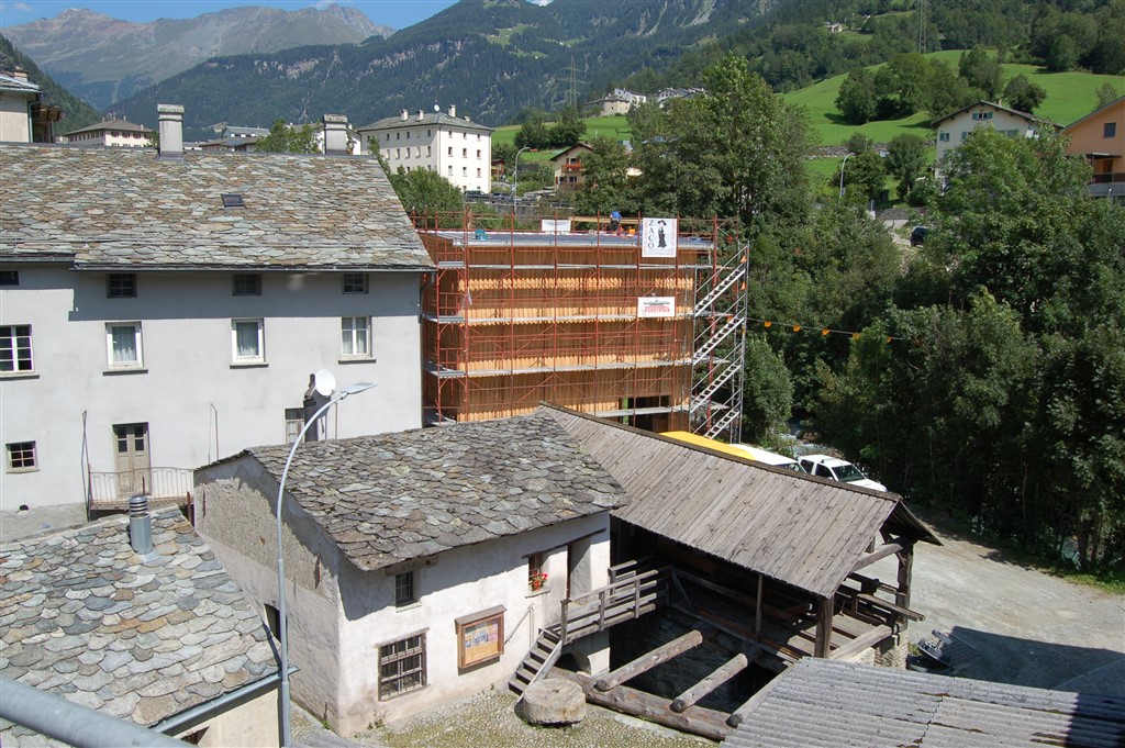 Il nuovo spazio di conservazione ed espositivo dedicato alle collezioni etnografiche regionali sorge su una particella ad est del Centro preindustriale di Aino, S. Carlo, fra il fiume Poschiavino e la gora che alimenta il mulino e la segheria. Su questo terreno, acquistato di recente dal Museo poschiavino, c’era una piccola falegnameria dismessa da anni, ora smantellata.