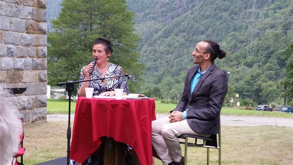 Sotto le arcate del Viadotto di Brusio, sabato 31 agosto Begoña Feijoó Fariña – scrittrice e presidente della PGI Valposchiavo – intervista Alexandre Hmine, professore di letteratura italiana al Liceo di Lugano.