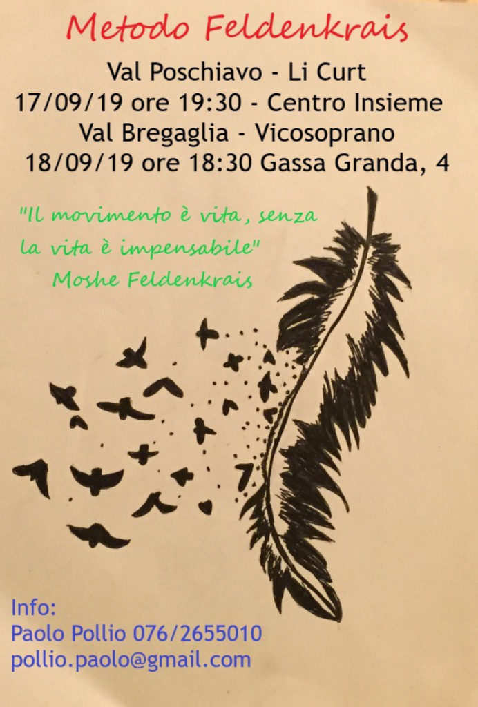 Senza categoria A Poschiavo il metodo Feldenkrais Martedì 17 settembre Di Annuncio pubblicitario - 10 Settembre 2019 0 319