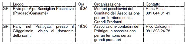 Le sezioni cantonali invitano tutti, abitanti della campagna e delle città, allevatori, politici e chiunque voglia sapere il motivo di questi falò di protesta, a informarsi sulle conseguenze della propagazione incontrollata dei grandi predatori e a discutere per trovare delle soluzioni fattibili.
