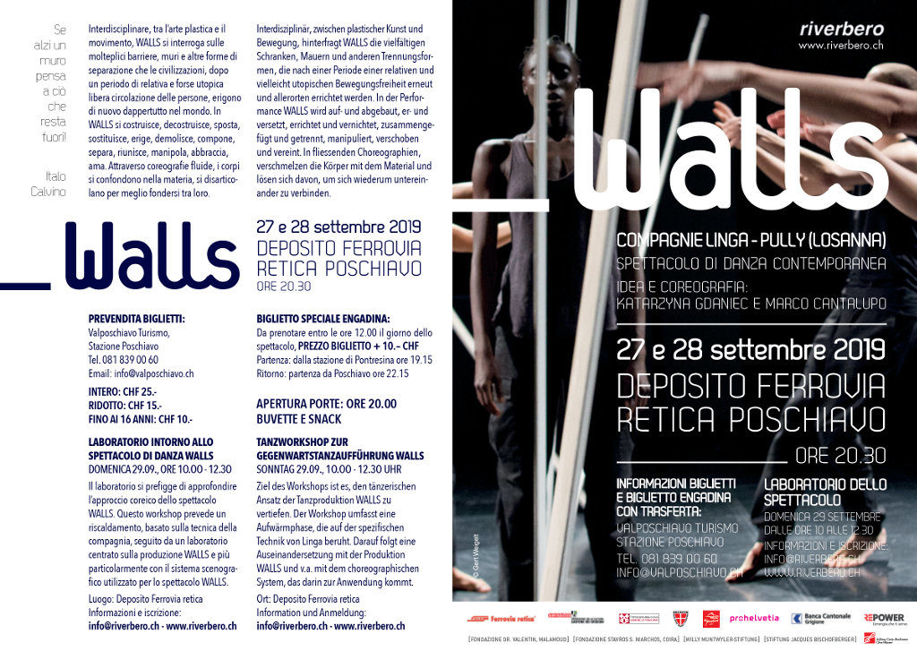 Spettacolo di danza contemporanea WALLS (27-28 settembre 2019) e workshop (29 settembre 2019) – Deposito Ferrovia retica Poschiavo