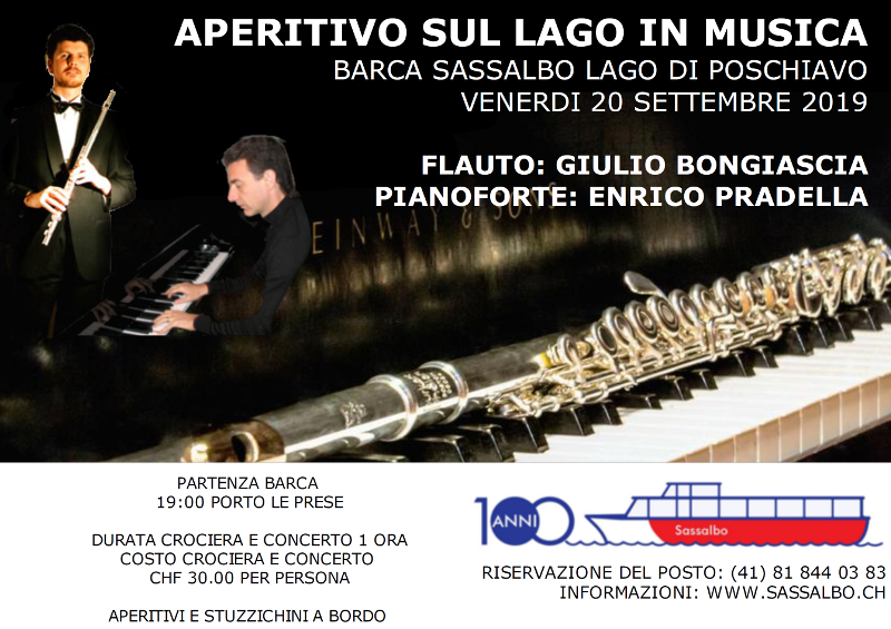 Dalle 19.00: Aperitivo sul lago in musica, concerto di piano e flauto sulla Sassalbo.