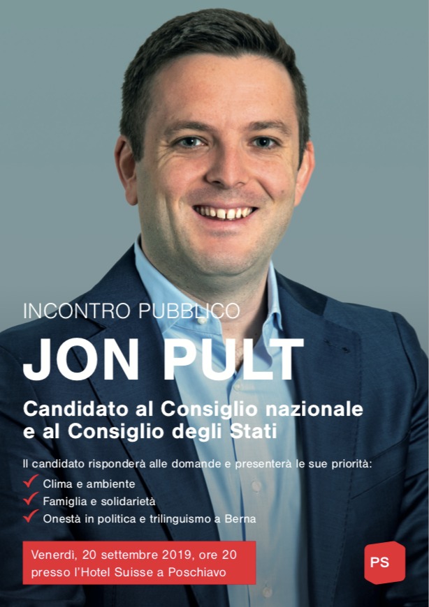 Alle 20.00, presso l’Hotel Suisse a Poschiavo: Incontro pubblico con Jon Pult.
