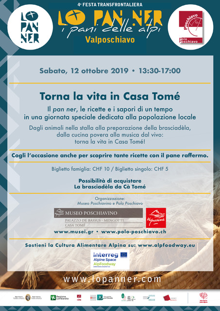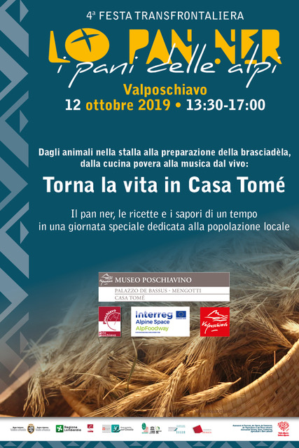 Torna anche quest’anno la Festa del pan ner in Casa Tomé. La musica, il profumo del pane appena sfornato che si mescola a quello degli animali nella stalla, assaggi di cucina povera quasi dimenticati, che probabilmente potrai gustare solo qui: anche quest’anno il Museo, in collaborazione con il Polo Poschiavo e il progetto Interreg AlpFoodway, offre un programma speciale, ogni anno diverso, dedicato alla popolazione locale