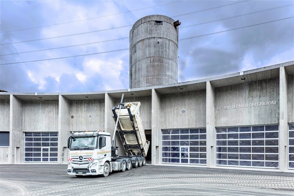Sia la qualità architettonica, sia la logica tecnica ed economica danno vita a un progetto complessivo di elevata funzionalità. La costruzione del nuovo punto d’appoggio permette di adeguare le condizioni di spazio e i presupposti per un servizio di manutenzione stradale efficiente ed economico nel Circondario 3 dell’UT alle esigenze future. Il silo per sale e pietrisco avente una capacità complessiva di 400 metri cubi garantisce che il rifornimento del servizio invernale possa avvenire in loco.