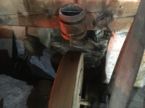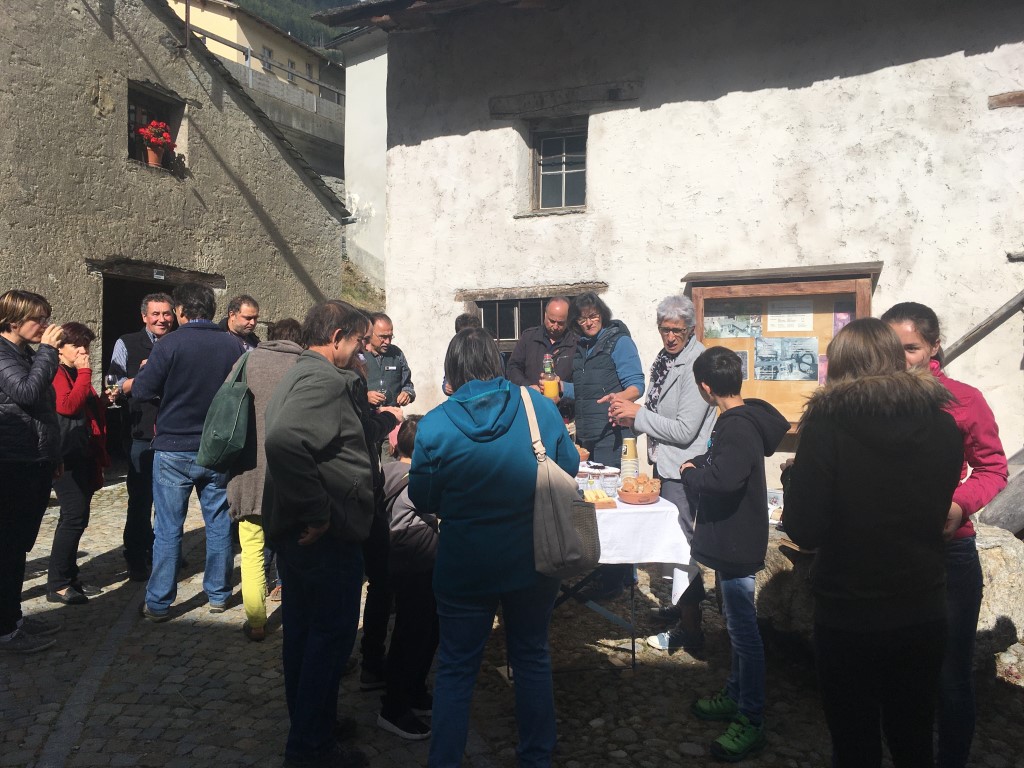 Durante il corso della mattinata è stato possibile visitare e vedere in funzione anche la fucina e la segheria, che, come il mulino, sono azionate grazie alla forza dell’acqua. Un tuffo nel passato che ha interessato e emozionato tutti i presenti. L’incontro si è concluso con un buon bicchiere di vino accompagnato da assaggi di formaggi e salumi nonché grissini e torta a base di farina di grano saraceno.