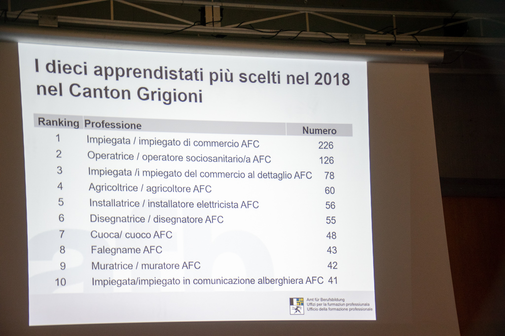 Gli allievi e le allieve, assieme ai genitori, hanno avuto la possibilità di ricevere delle informazioni riguardanti la formazione professionale (in Valposchiavo ci sono circa 30 mestieri differenti) e di ascoltare direttamente le esperienze personali di apprendisti e professionisti. Inoltre, le aziende formatrici che si sono messe a disposizione hanno presentato le loro professioni e hanno risposto alle domande dei presenti.
